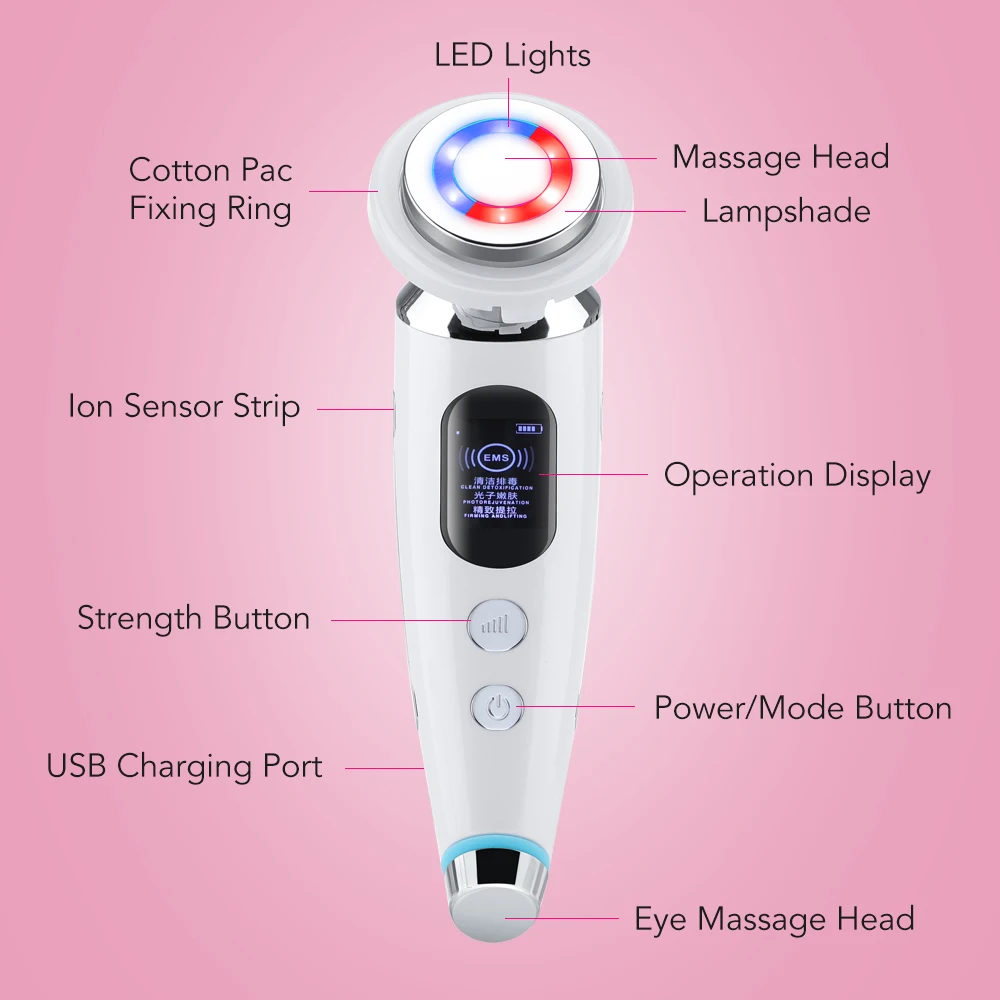 2.[Четыре режима] режим очистки: Вибрация; Режим омоложения фотонов: Красный светильник + Вибрация; Прочный режим подъема: синий светильник + Вибрация; Режим микро тока: красный светильник + синий светильник + вибрация + 42 ° C постоянная температура для удовлетворения потребностей различных групп людей.