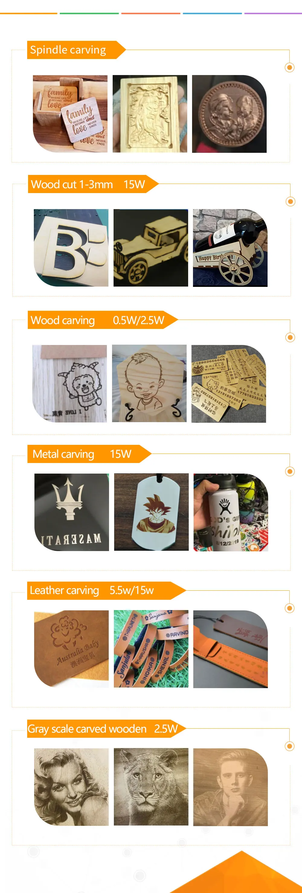 1. Лазер может быть вырезан в том числе: красное дерево, бамбук, бумажные карты, слоновая кость, кожа, легковоспламеняющийся пластик, PCBA и т. Д.