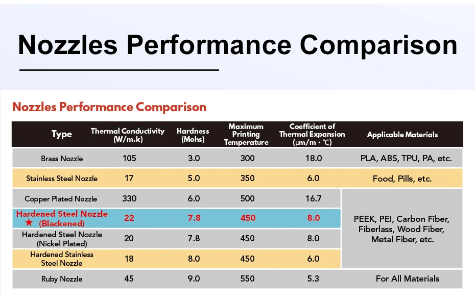 Вольфрамовые и фосфоресцирующие пигменты и другие шлифовальные добавки, композитные материалы. Также работает плавно с высокотемпературными материалами, которые нуждаются в всенаправленной печати.