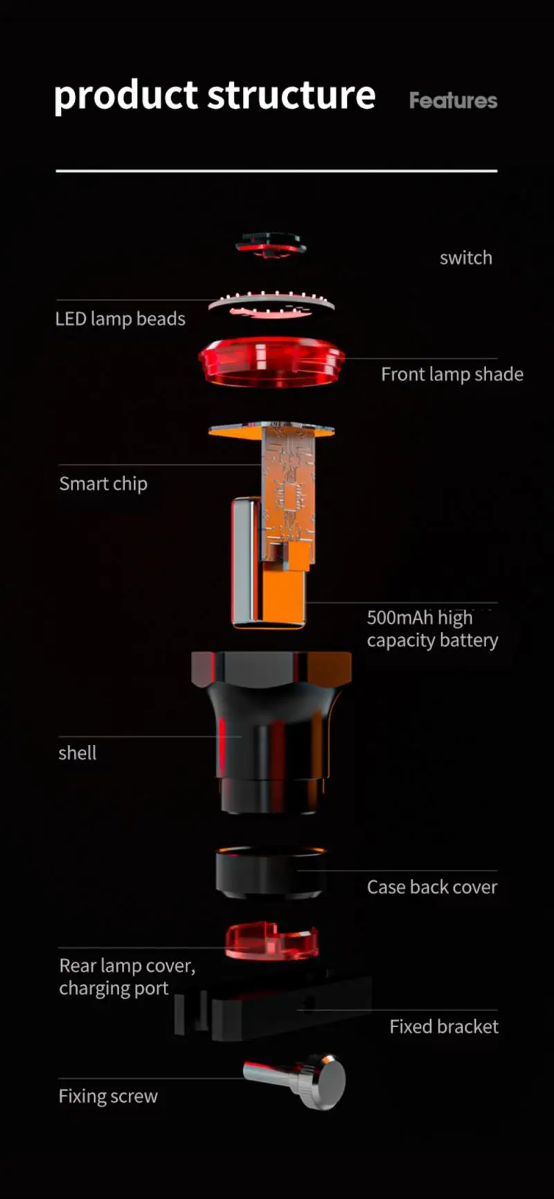Автоматический режим: светильник, датчик вибрации, Датчик тормоза. В автоматическом режиме задний светильник выключен, и все еще есть функция обнаружения тормозов.