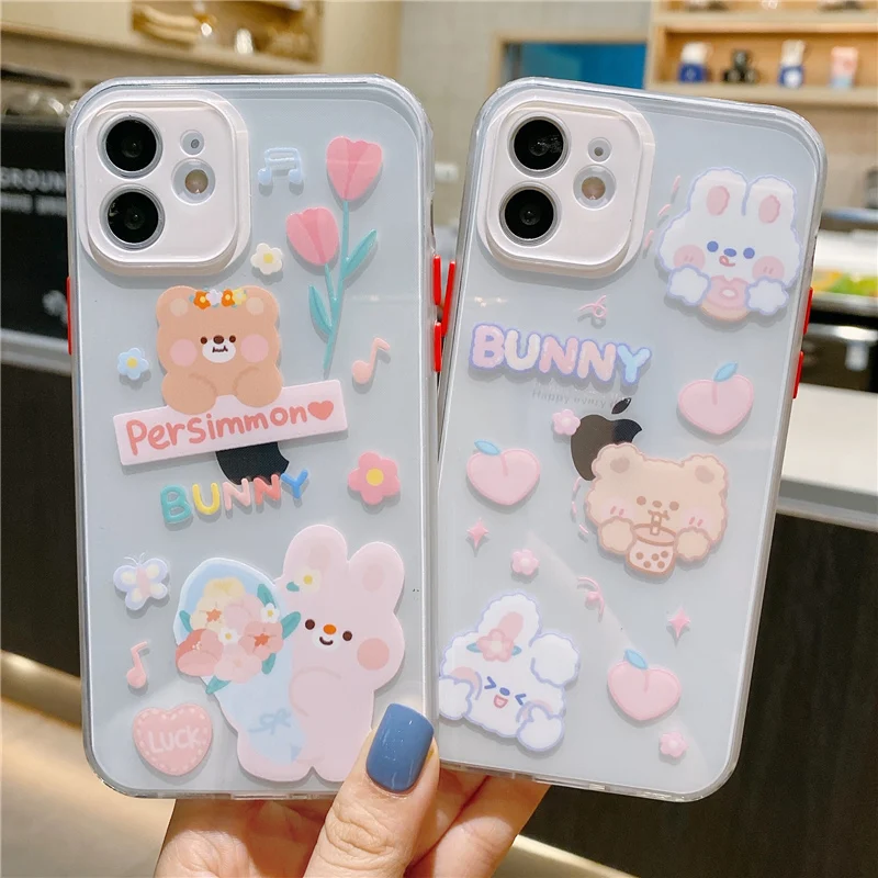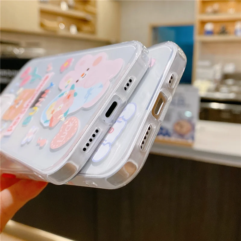 Чехол для телефона с милым медведем и кроликом для iPhone 13 12 11 Pro XR XS Max 7 8 Plus SE 2020, мягкая Противоударная защитная задняя крышка для объектива камеры