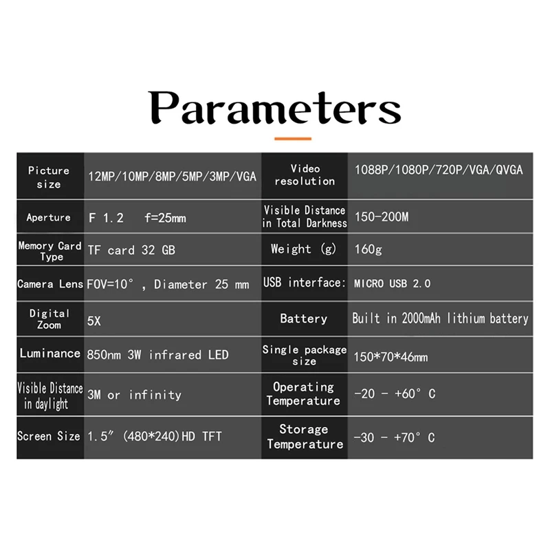 Супер ночное видение: 3 Вт инфракрасный светодиодный индикатор и 850нм осветитель, этот монокуляр ночного видения позволяет наблюдать цель в полностью темном состоянии, И инфракрасный светильник s 7 уровней регулируются в соответствии с окружающим светильник, который может достигать 656ft/200m.