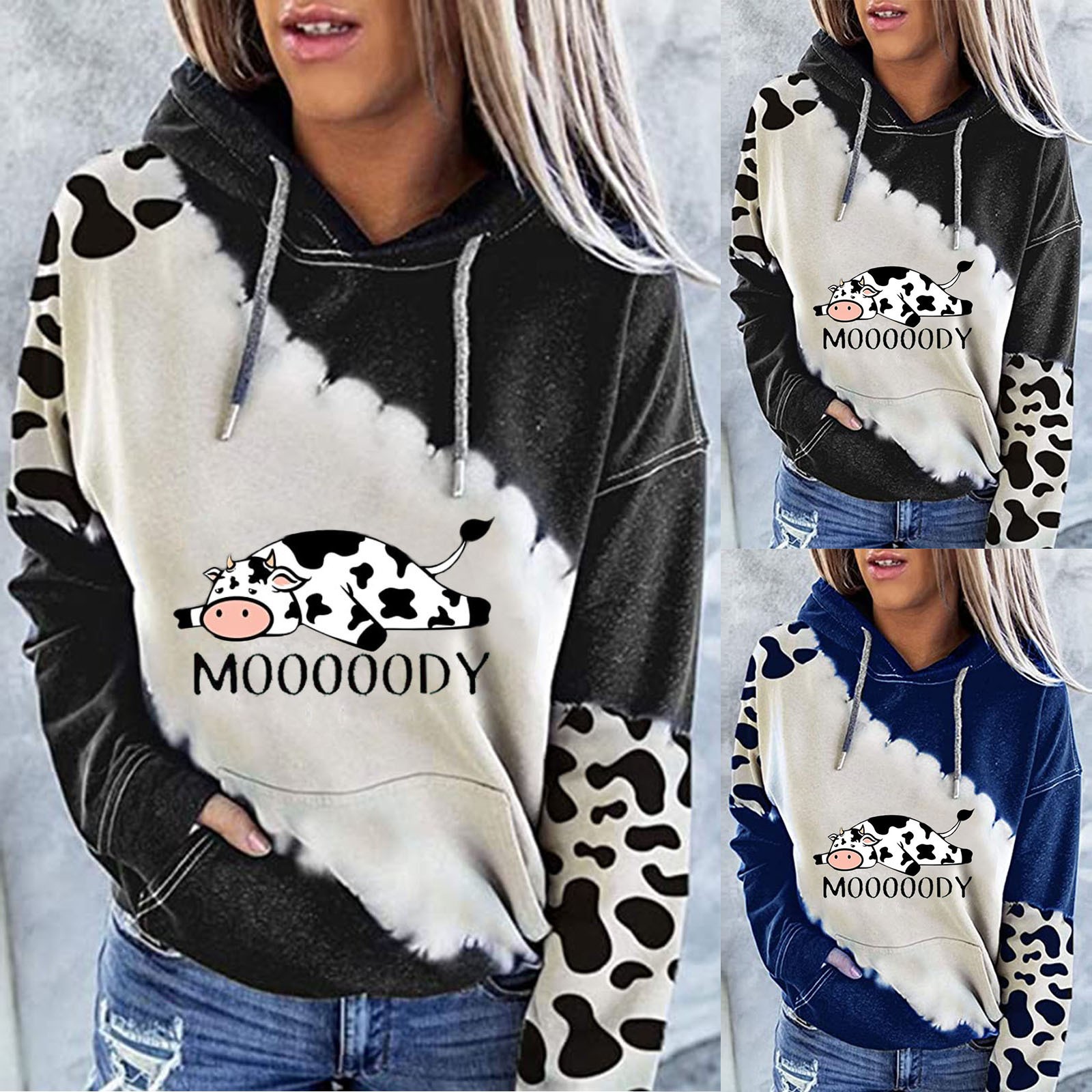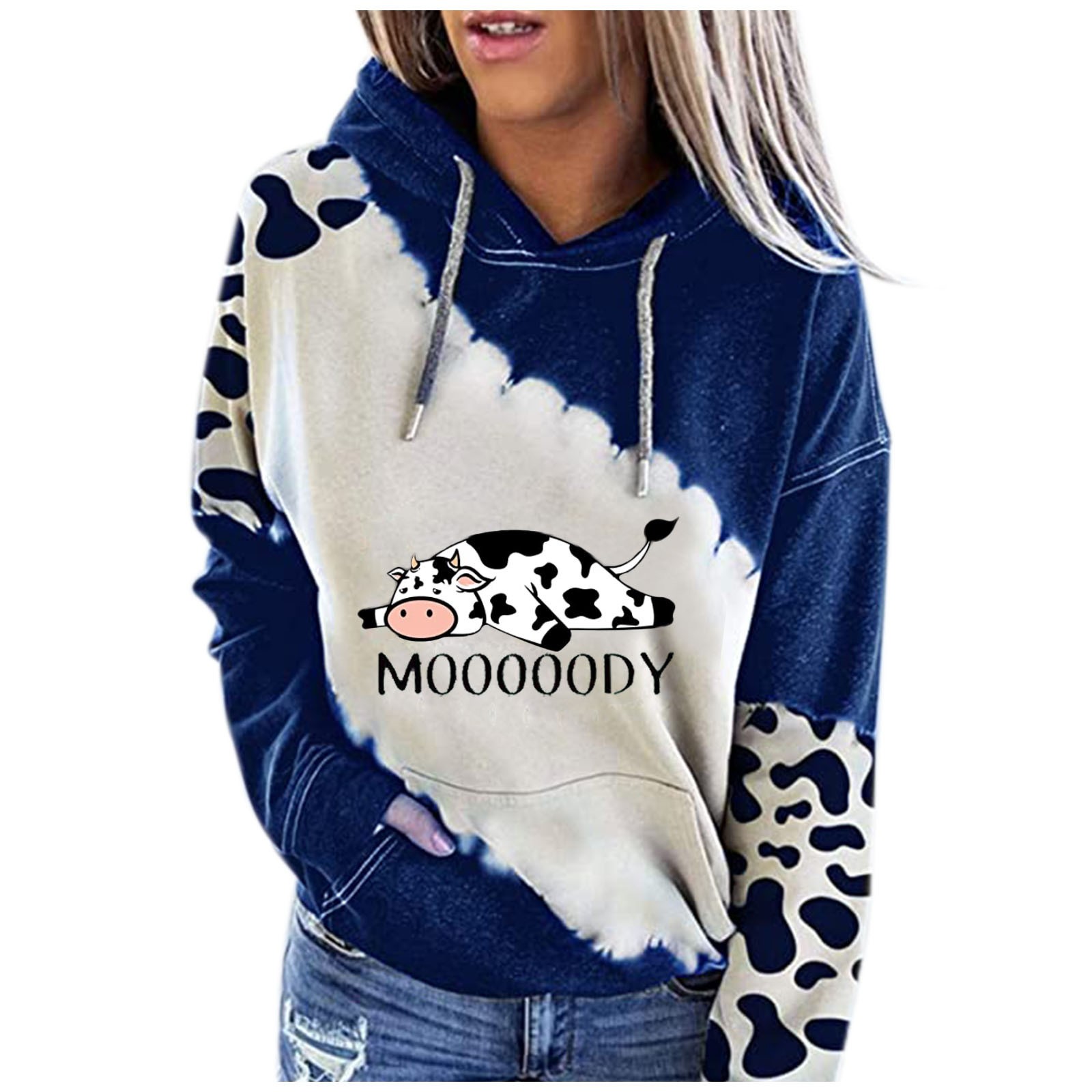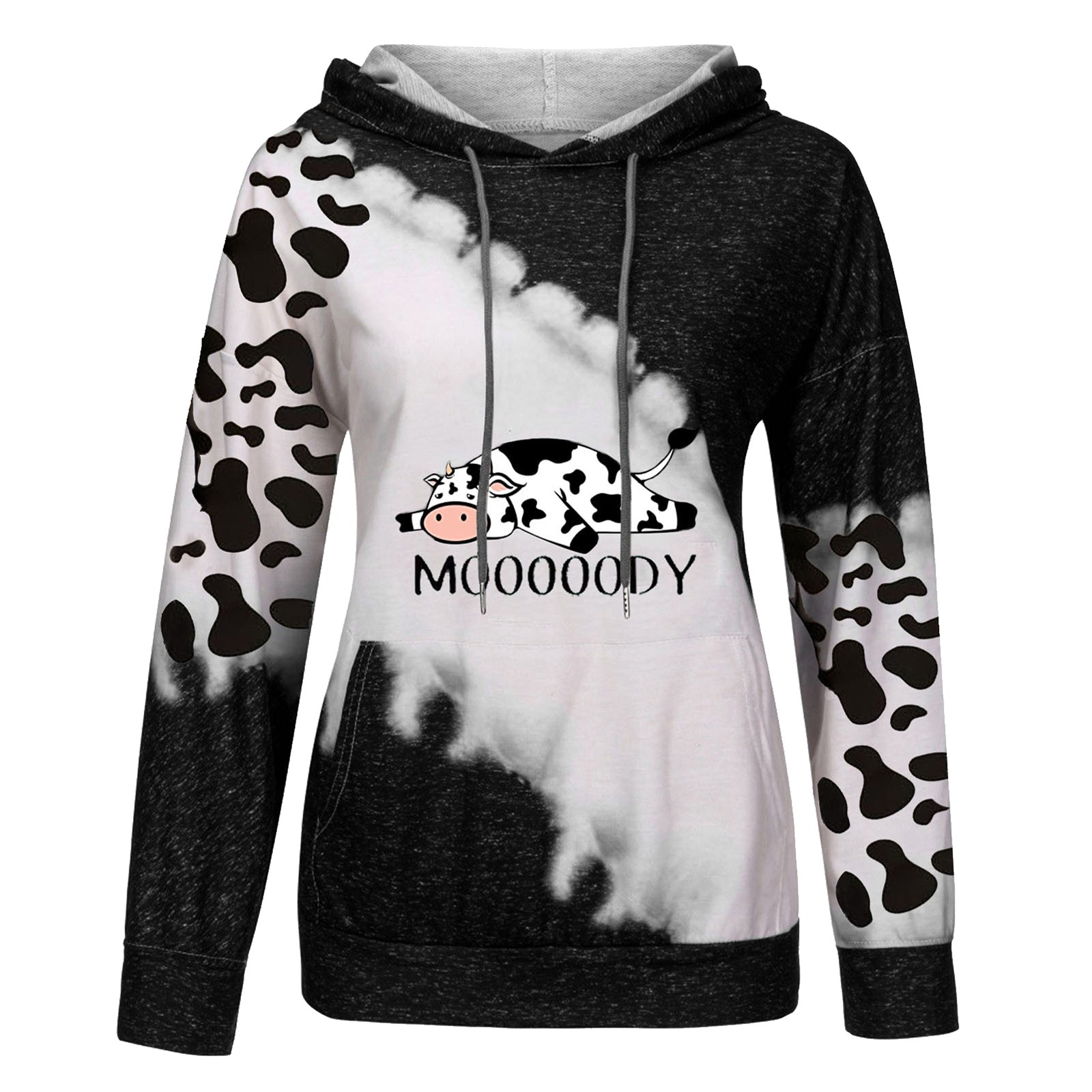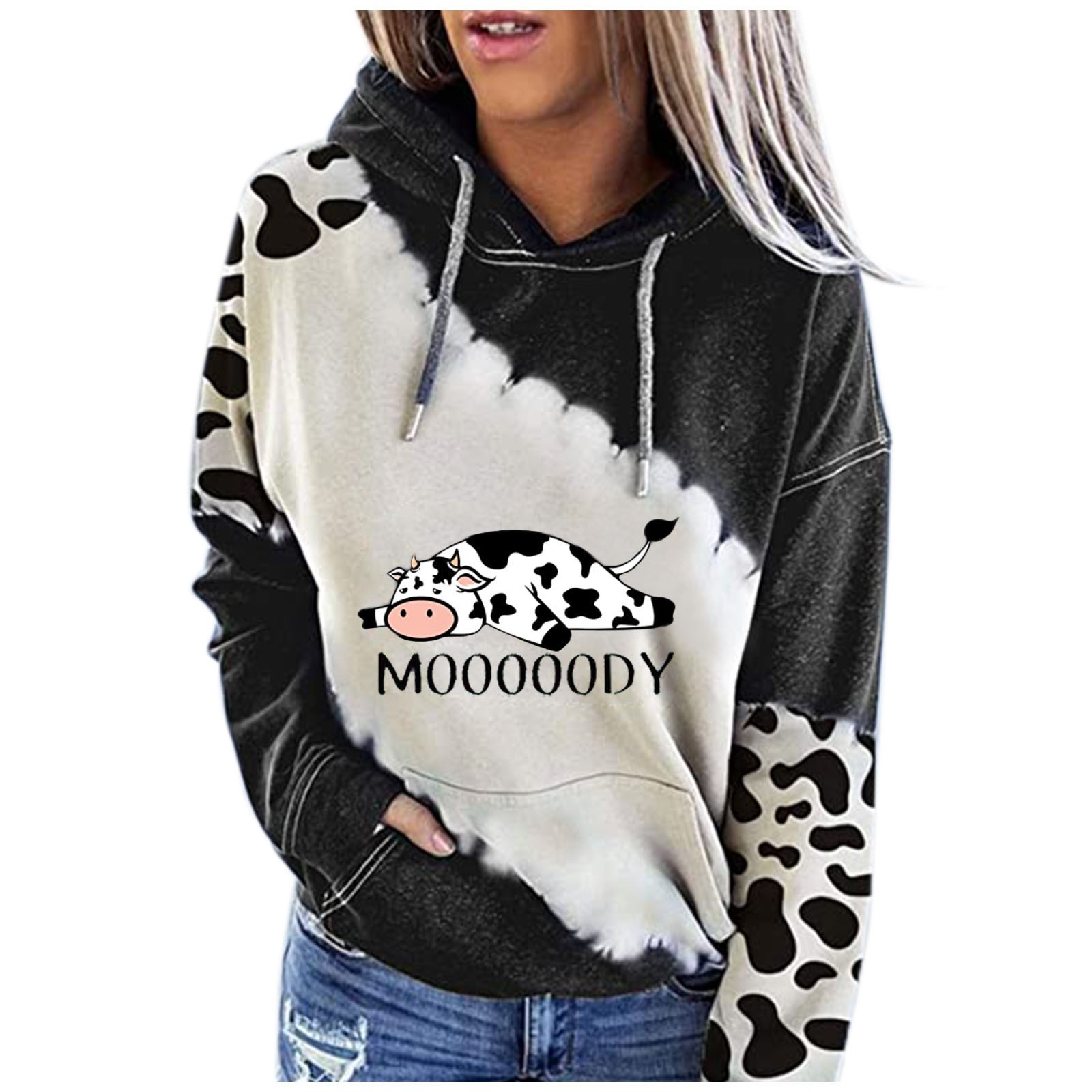 Женская милая Толстовка с принтом коровы с длинным рукавом, круглый вырез, повседневные топы, рубашки