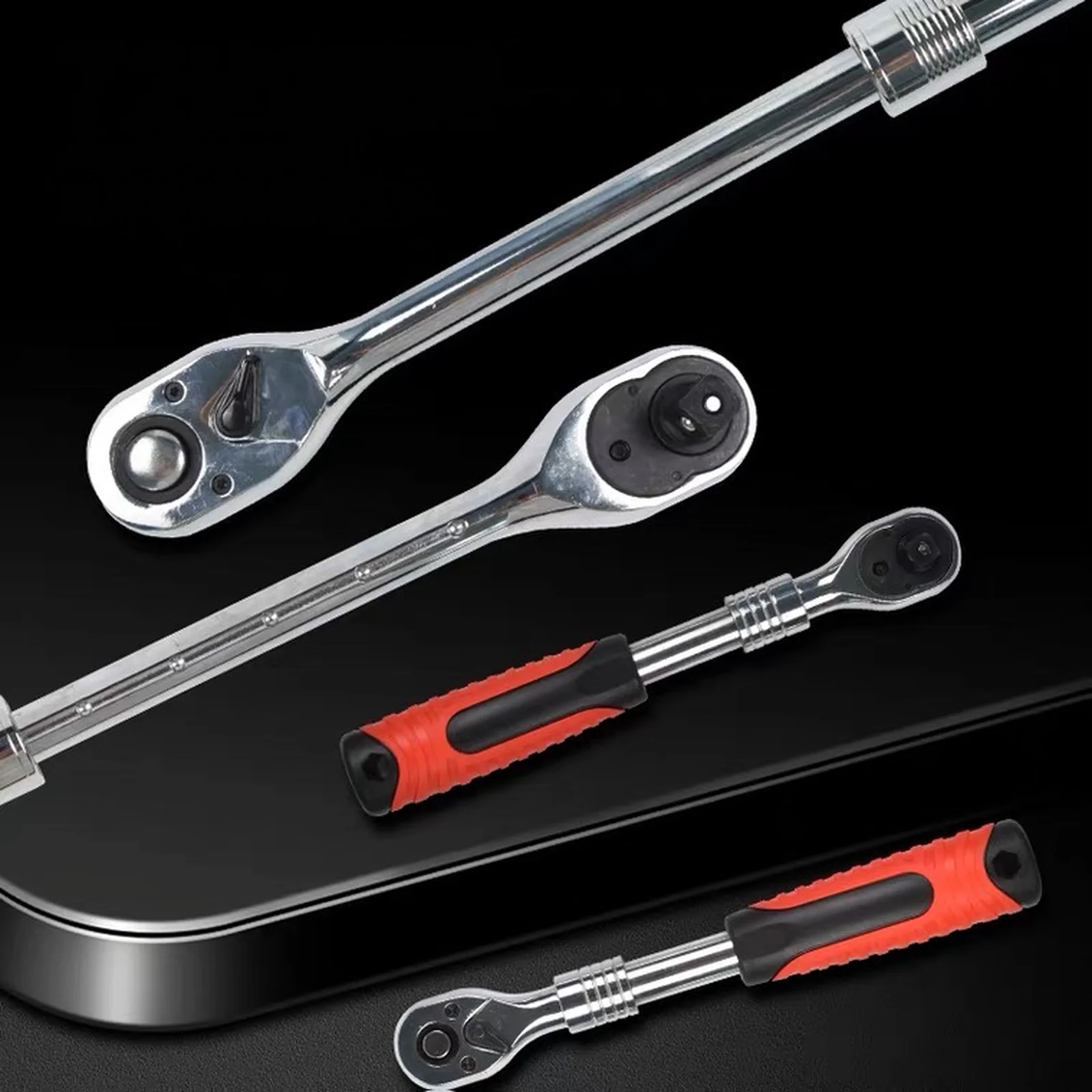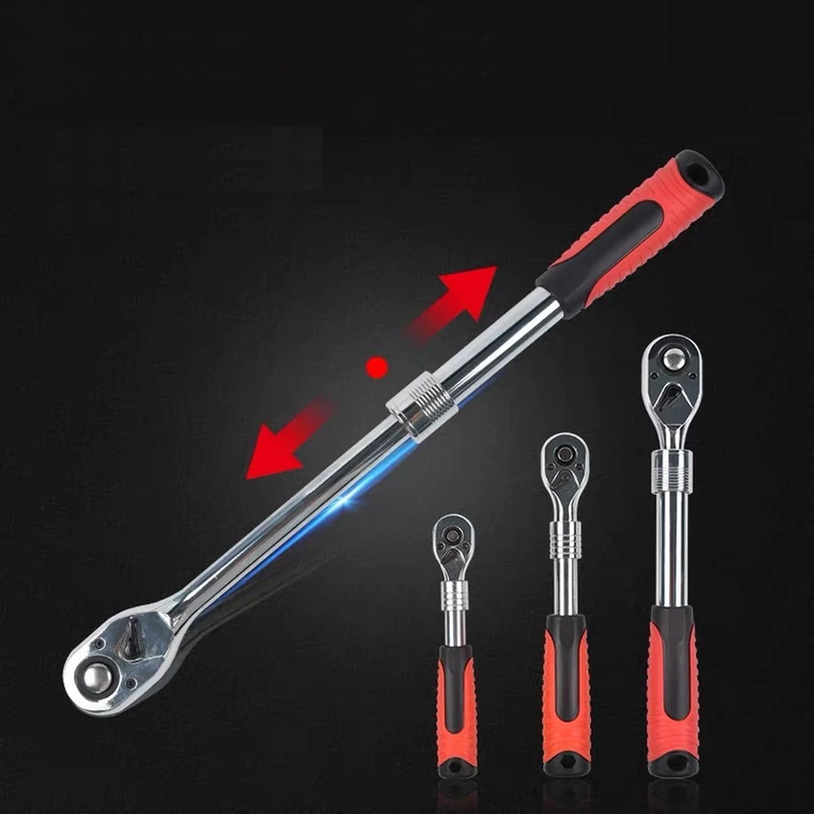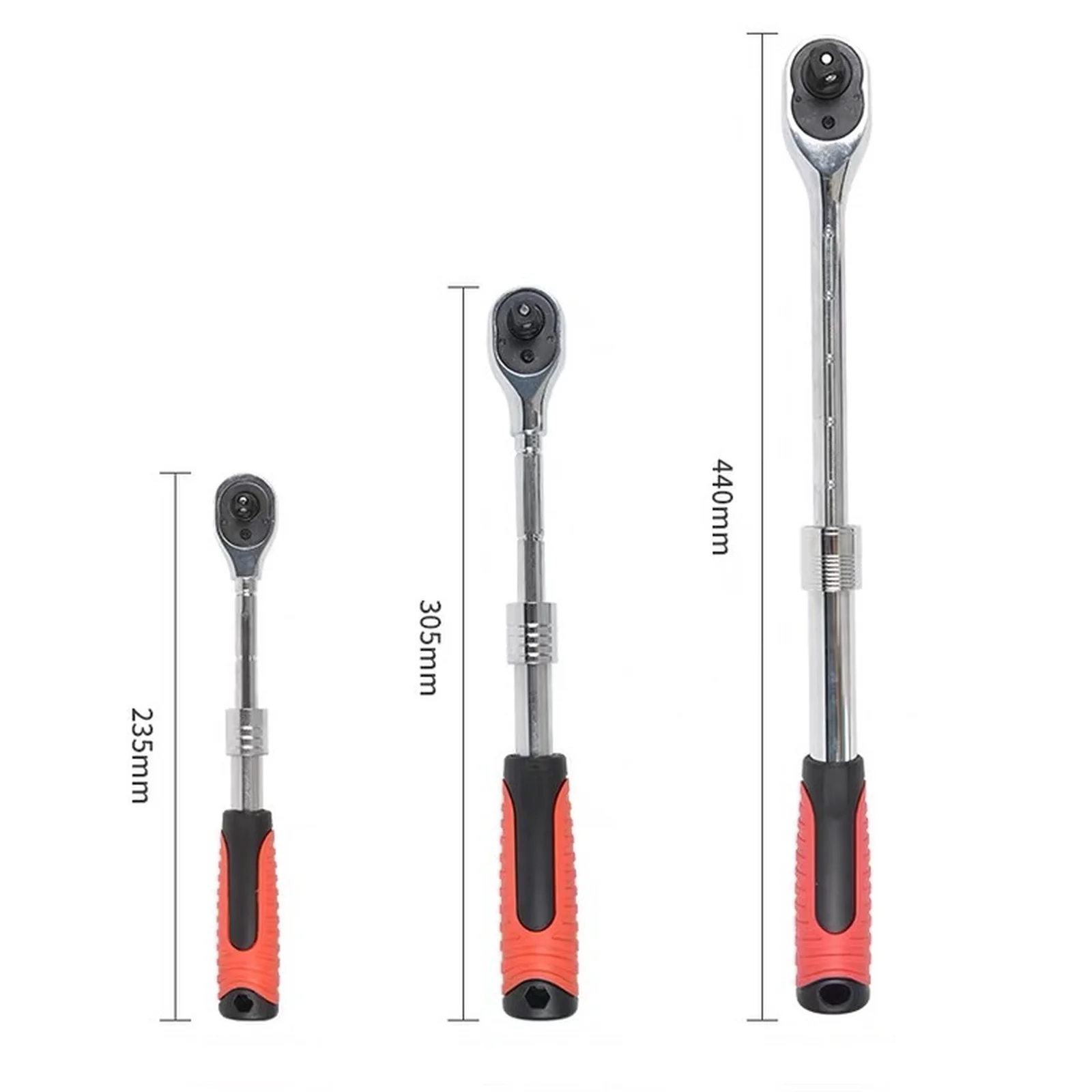 Трещотка телескопическая GOODKING 1/2" дюйма c возможностью промежуточной фиксации в 6-ти положениях длины рукоятки. Размер: 300-440 мм Количество зубьев: 72 Тип стали инструмента: CR-V хром-ванадий. Рукоятка двухкомпонентная резино-пластиковая, стойкая к химическим составам.