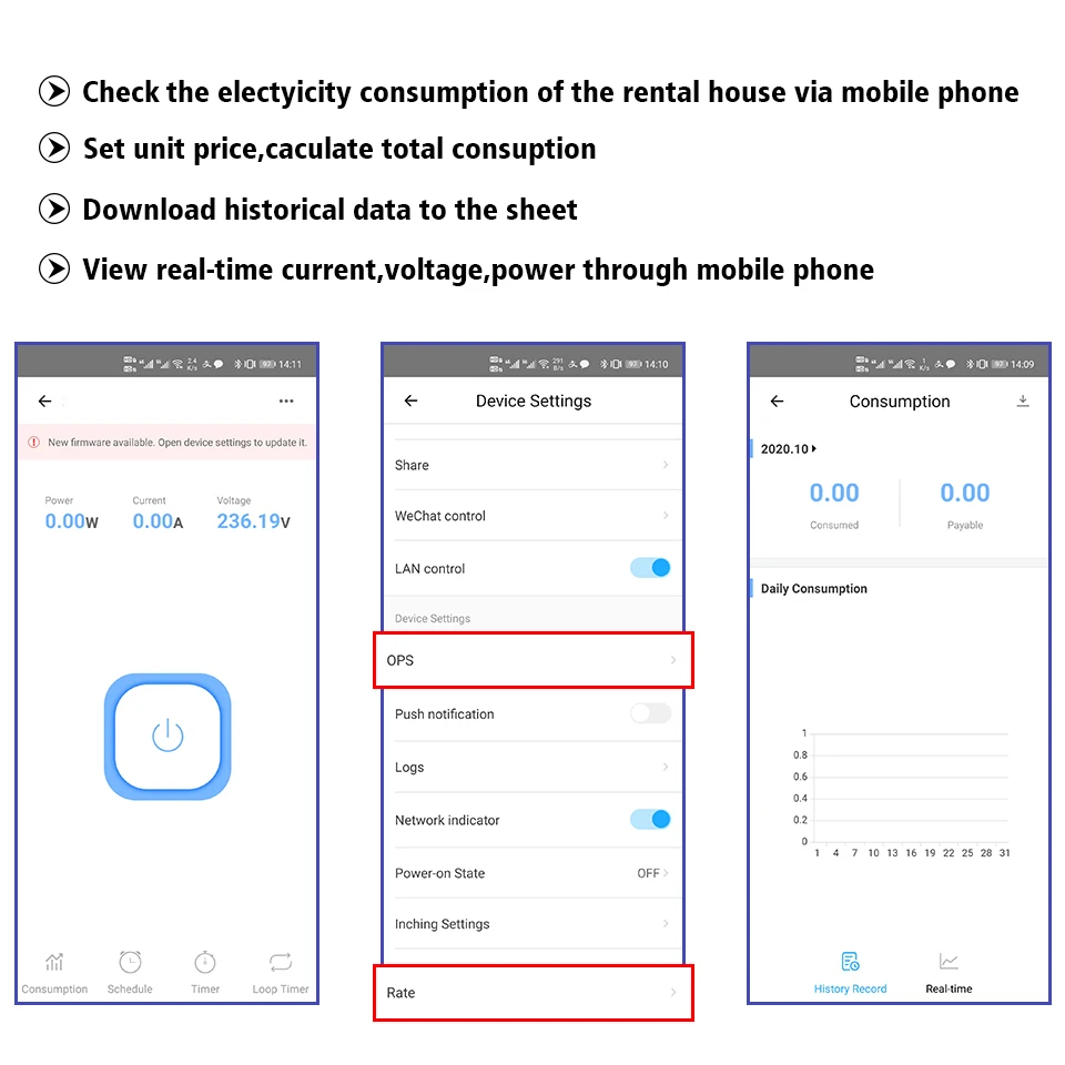 3. Мониторинг энергии, установка цены блока питания, может какулировать домашнее устройство энергопотребление, загружать данные на лист