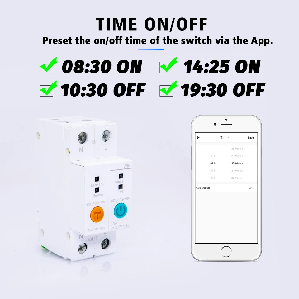 2P din-рейка WIFI умный измеритель энергии Потребляемая мощность кВтч метр автоматический выключатель таймер реле Вольтметр для умного дома