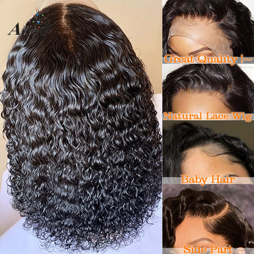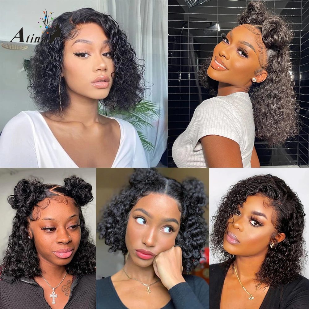 Кудрявый Боб 13x 6 кружевной передний парик предварительно собранные человеческие волосы без клея натуральные волосы швейцарская волна воды 4X4 Кружева Закрытие парики для черных женщин Atina