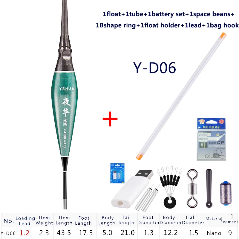 Светодиодный ные электрические поплавки + батарея + космические бобы + держатель поплавка + свинцовые аксессуары, Подарочный светящийся нано-буй, набор для рыбалки пресной воды