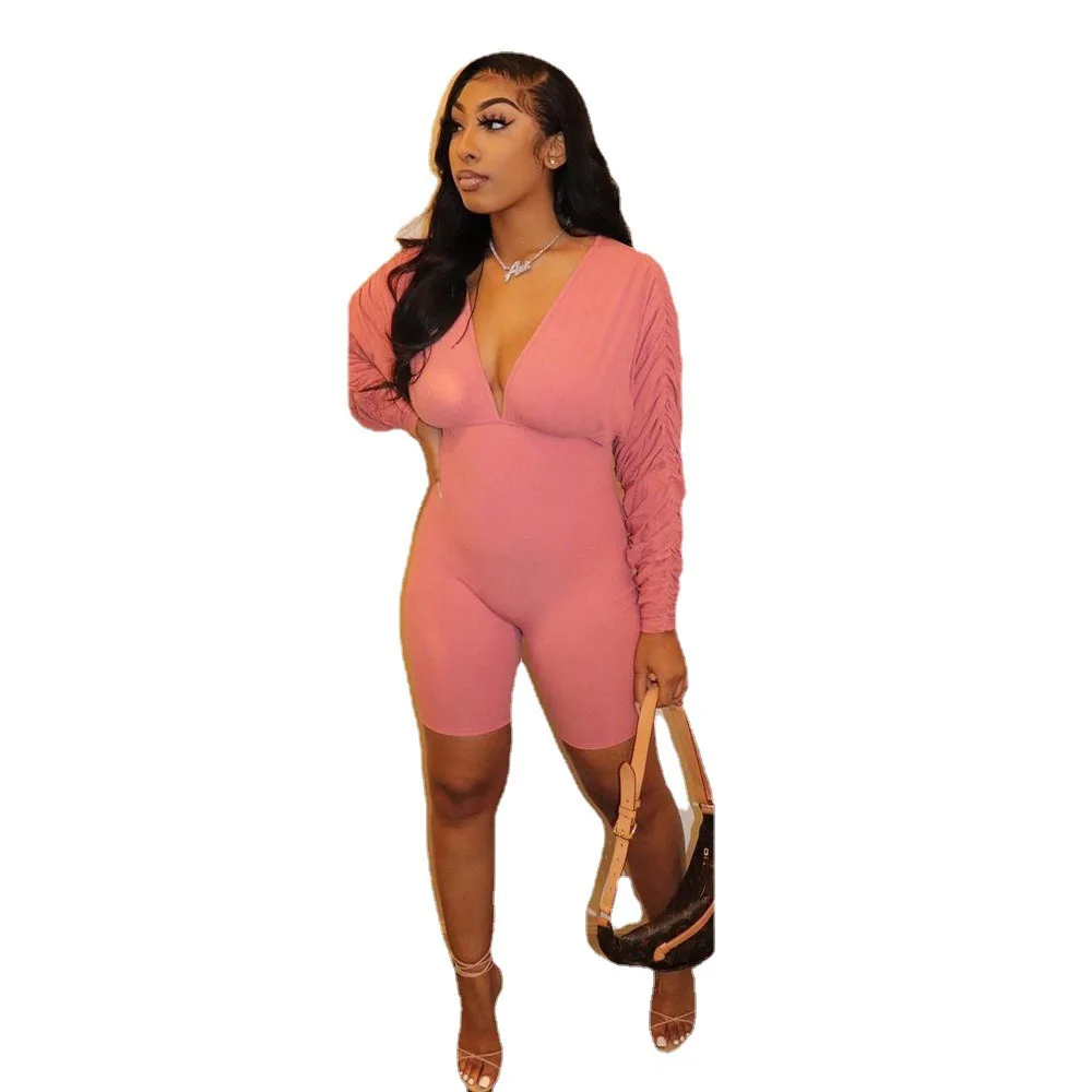 Женский комбинезон с широкими штанинами повседневный плиссированный V-образным