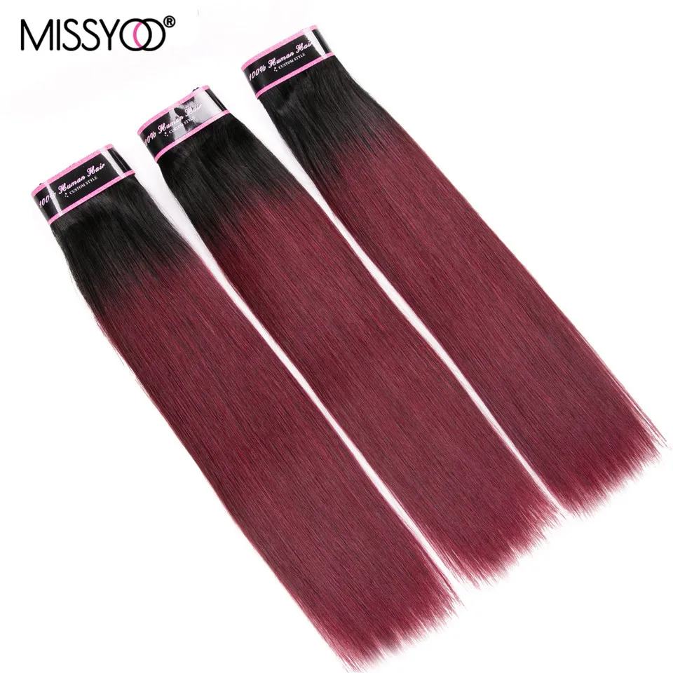 Темно 1B 99J пряди с закрытием прямые пряди человеческих волос с закрытием Омбре волосы 3 пряди бразильские волосы Remy для наращивания