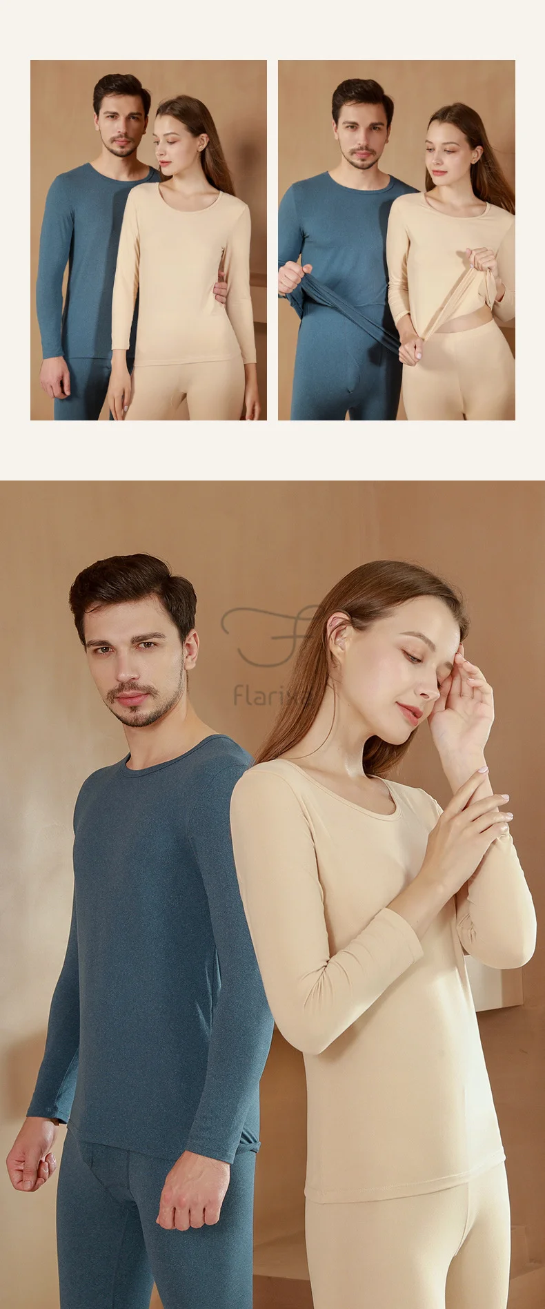 Flarixa осенне-зимний бесшовный Комплект женского термобелья из катионного плюша, Мужская осенняя одежда, длинные брюки, костюм для пары, Топ