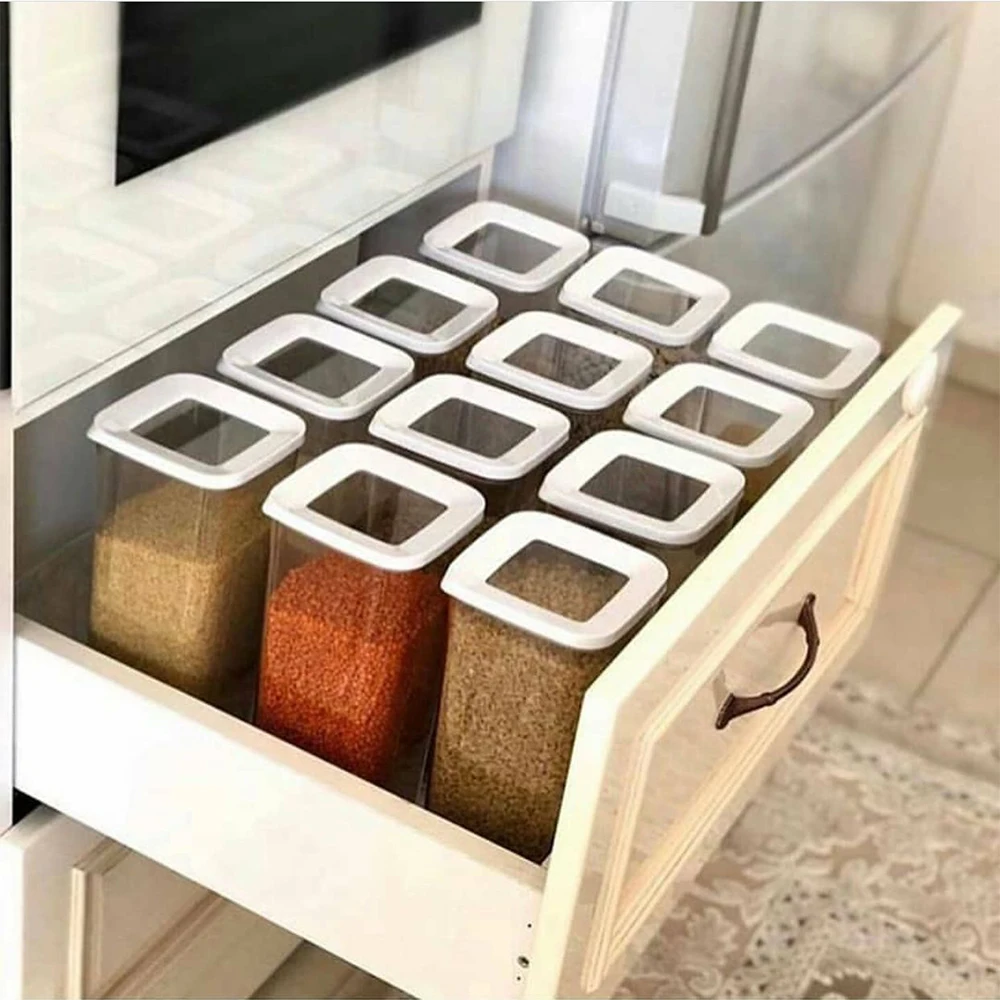 Сохраните все продукты свежими, такими как печенье, бобовые, чай, чипсы и т. Д. Добавьте цвет к вашей кухне со стильным внешним видом. Вы можете безопасно хранить свои специи.