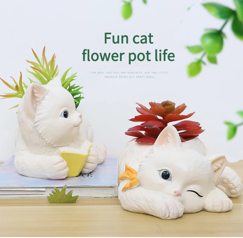Название: Забавный садовый цветочный горшок из смолы с изображением кота