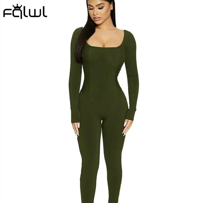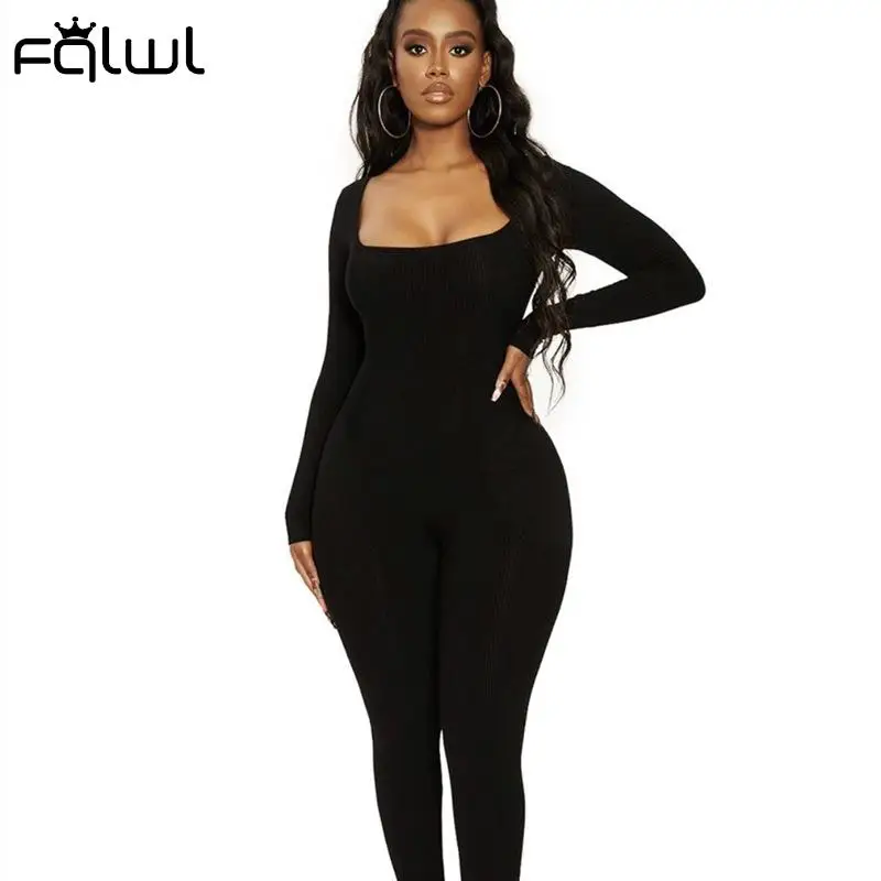 FQLWL зимние повседневные Черные Комбинезоны женские 2021 на молнии с длинным