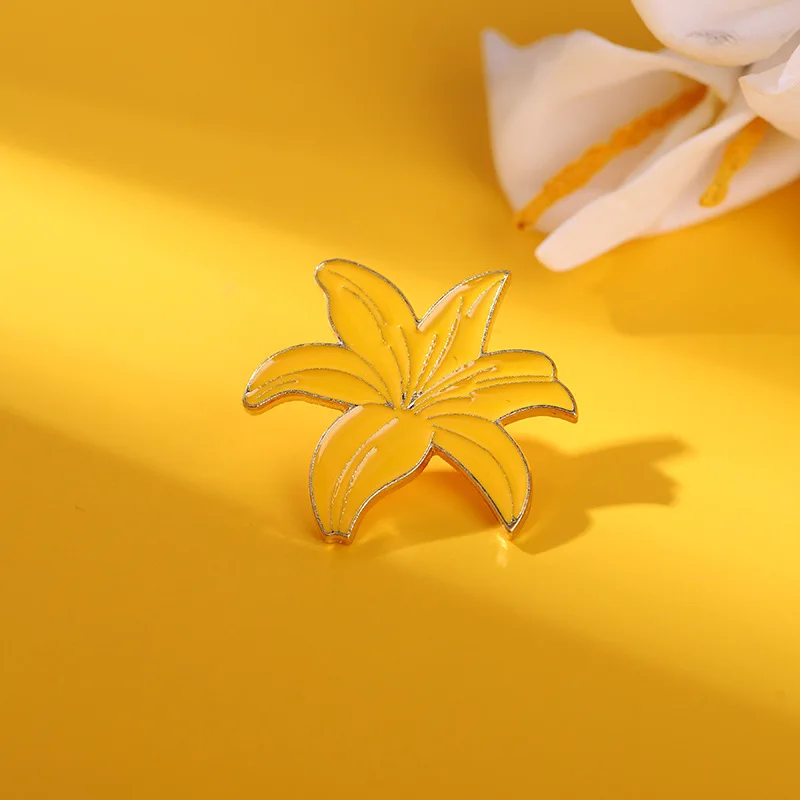 Желтая брошь лилии маленькая свежая желтая брошь лилии простой дизайн растительная брошь Лисичка простой дизайн Цветочная Брошь