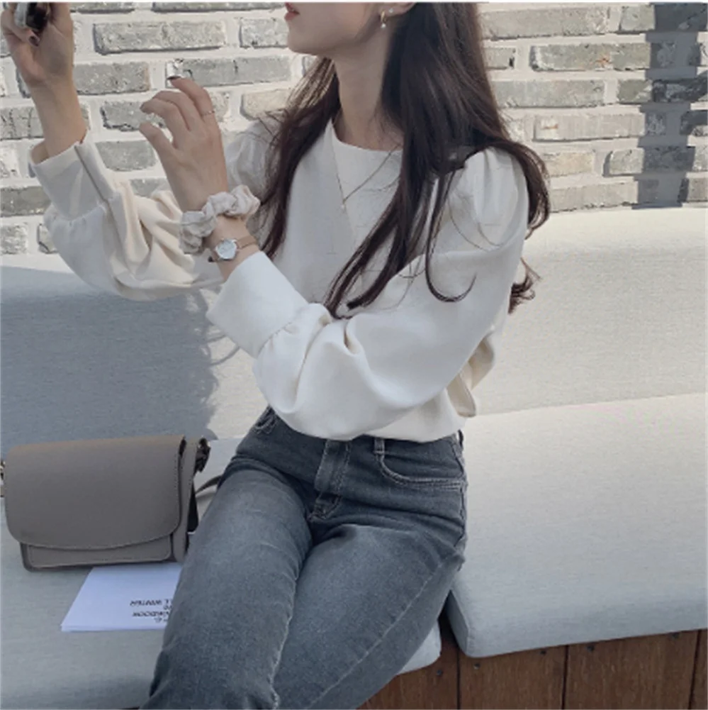 Женские весенне-осенние стильные шифоновые блузки с принтом v-образный вырез