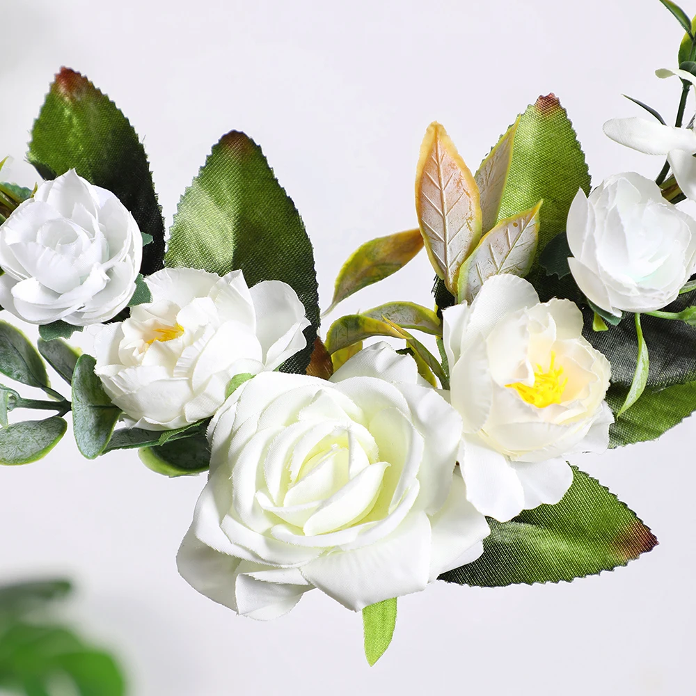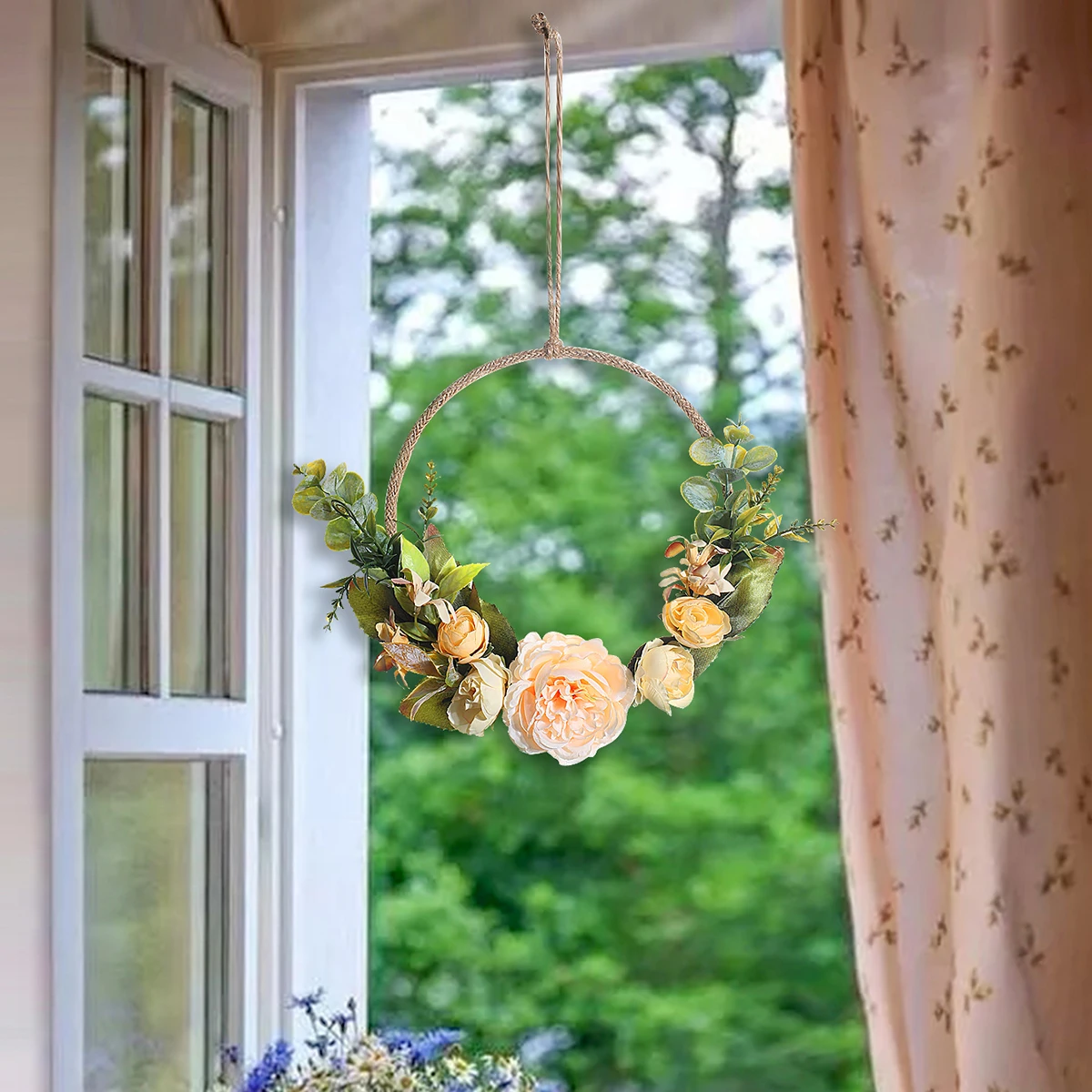 1. Изделие ручной работы. Этот великолепный настенный венок-обруч с искусственными шелковыми розами, украшенный зелеными листьями, украсит любую комнату или специальное мероприятие всего за одну секунду.