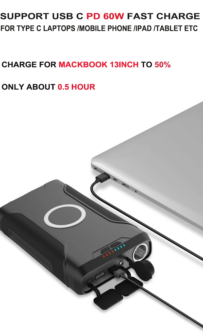 Модернизированный с помощью технологии USB-C (доставка электроэнергии), этот компактный портативный аккумулятор обеспечивает высокоскоростную зарядку PD до 60 Вт для смартфонов, планшетов, ноутбуков и других мобильных устройств в дороге.