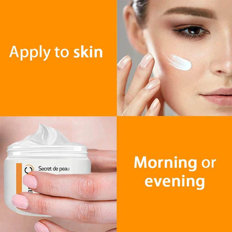 1. После очищения кожи днем и ночью нанесите соответствующее количество витамина С осветляющего крема для лица на лицо и шею. Массируйте мягко, пока он полностью не впитывается.