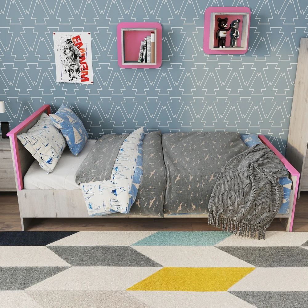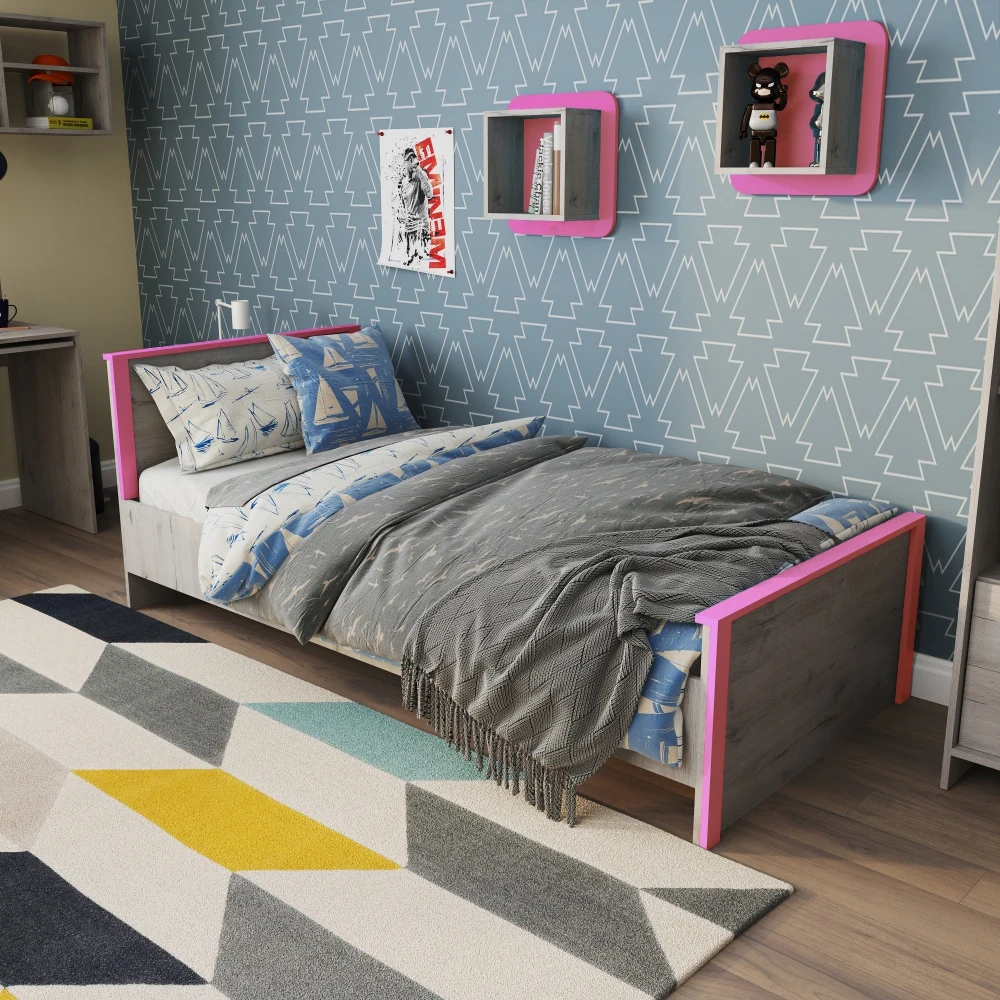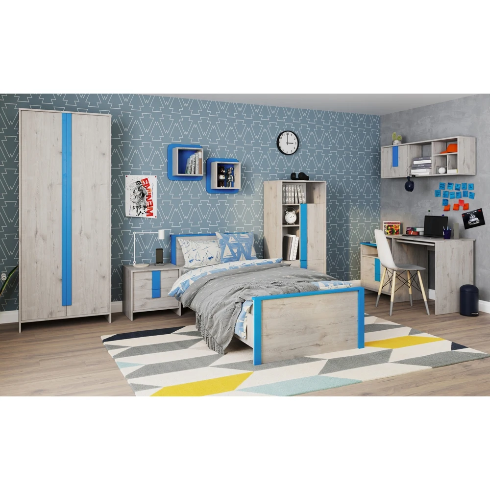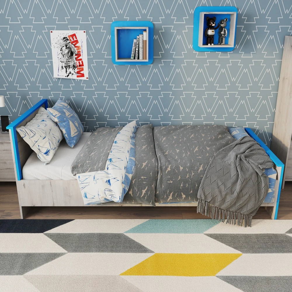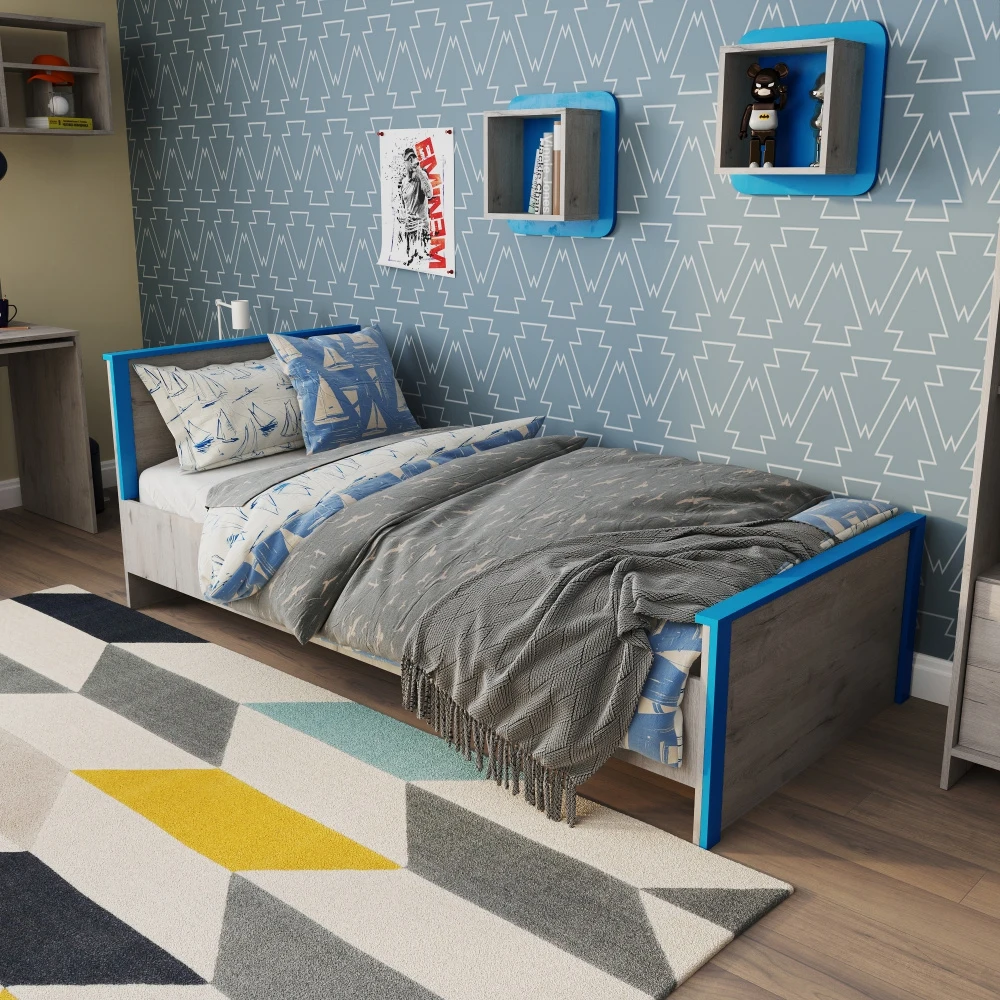 Односпальная кровать «Хантер» станет центром современной детской комнаты. Комфортные размеры спального места и надёжное основание на базе анатомической решётки обеспечивают спокойный отдых ребёнка. Ярким акцентом в дизайне кровати выступают голубые планки, добавляющие цвета и настроения в интерьер.