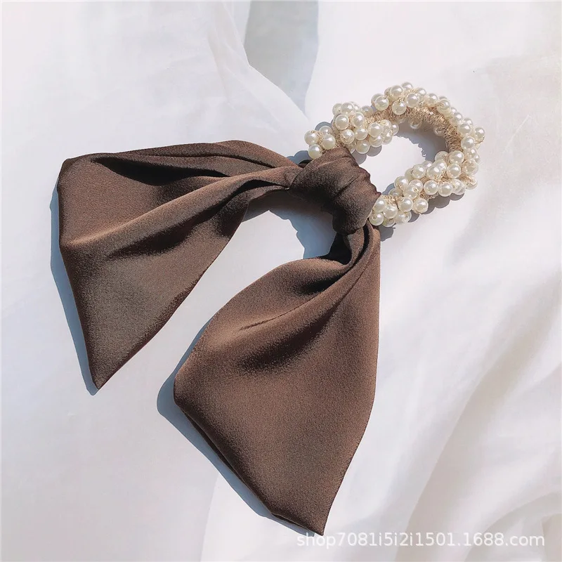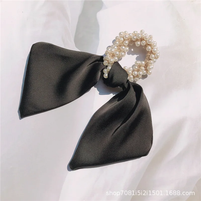 Женские жемчужные аксессуары для волос, резинка для волос, милая резинка для волос, держатель для хвоста, гладкая атласная резинка, цветная бандана