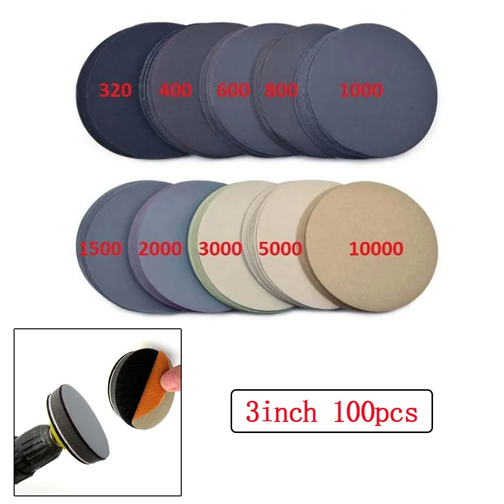 * 100 шт. 3 дюймовые наждачные круги 75 мм Влажная и сухая наждачная бумага 320-10000 для сыпучих материалов.
