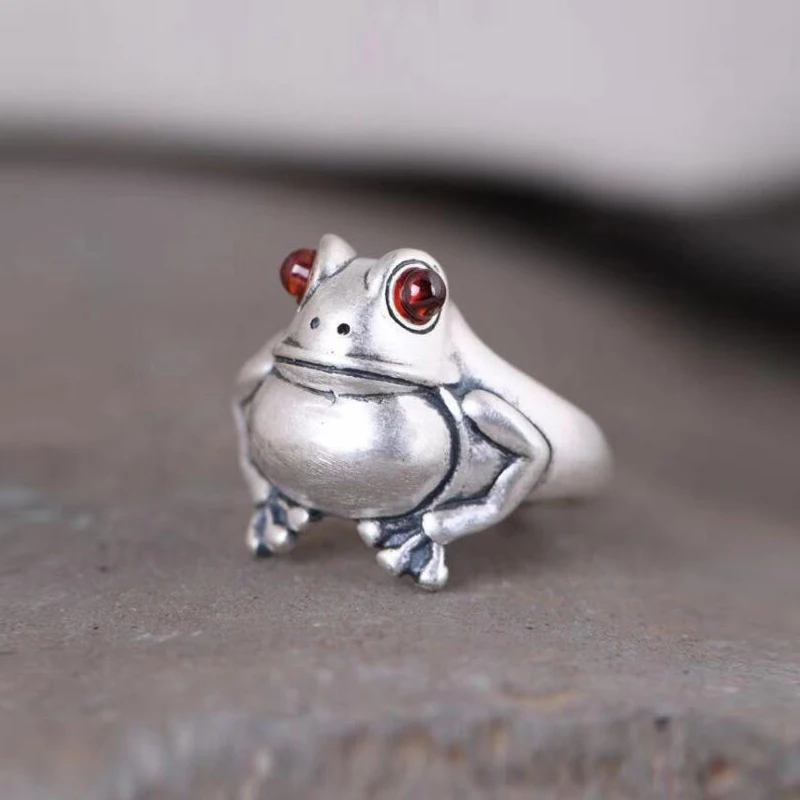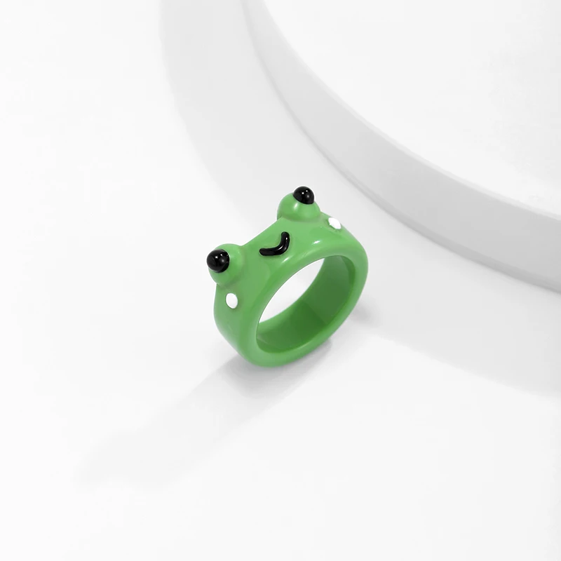 Индивидуальный дизайн форма милой лягушки Винтажное кольцо на палец с зеленым