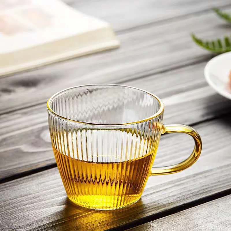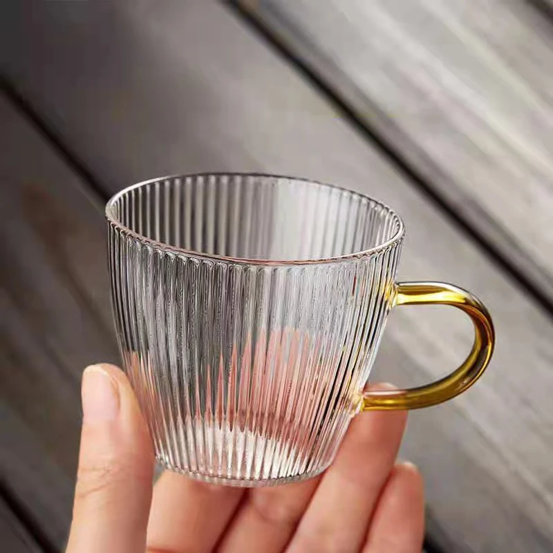 2 шт. термостойкая стеклянная чашка Бытовая стеклянная вертикальная линия чайная чашка ручка офисная кофейная кружка с цветком Чайная Посуда 120 млОсобенности