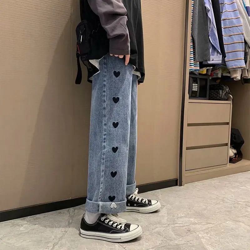 2021 новые весенне-осенние джинсы для мужчин в гонконгском стиле, парные джинсы штаны для мальчиков прямые свободные летние широкие мужские брюки
