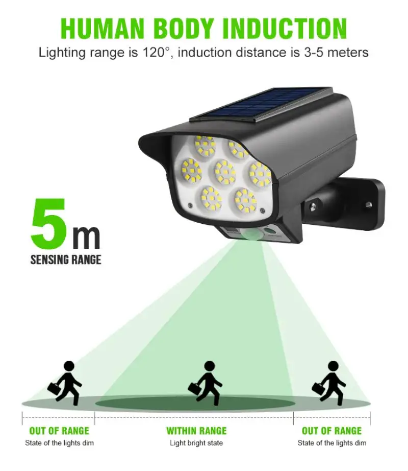 Солнечный контроль лампы: это солнечный светильник с внешним видом, монитору, оснащен яркий светодиодный/COB лампы, которые могут освещения вашего сада на активна из-за большого количества и отпугивания плохих людей. Внешний корпус изготовлен из инженерного АБС-материала и имеет водонепроницаемую функцию, что делает наружный солнечный светильник способным выдерживать плохую погоду.