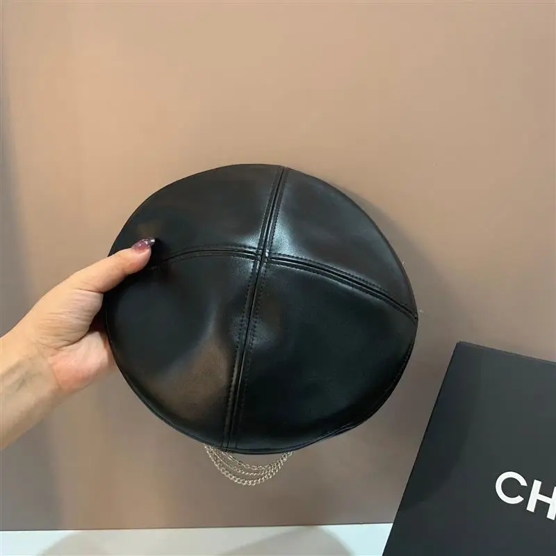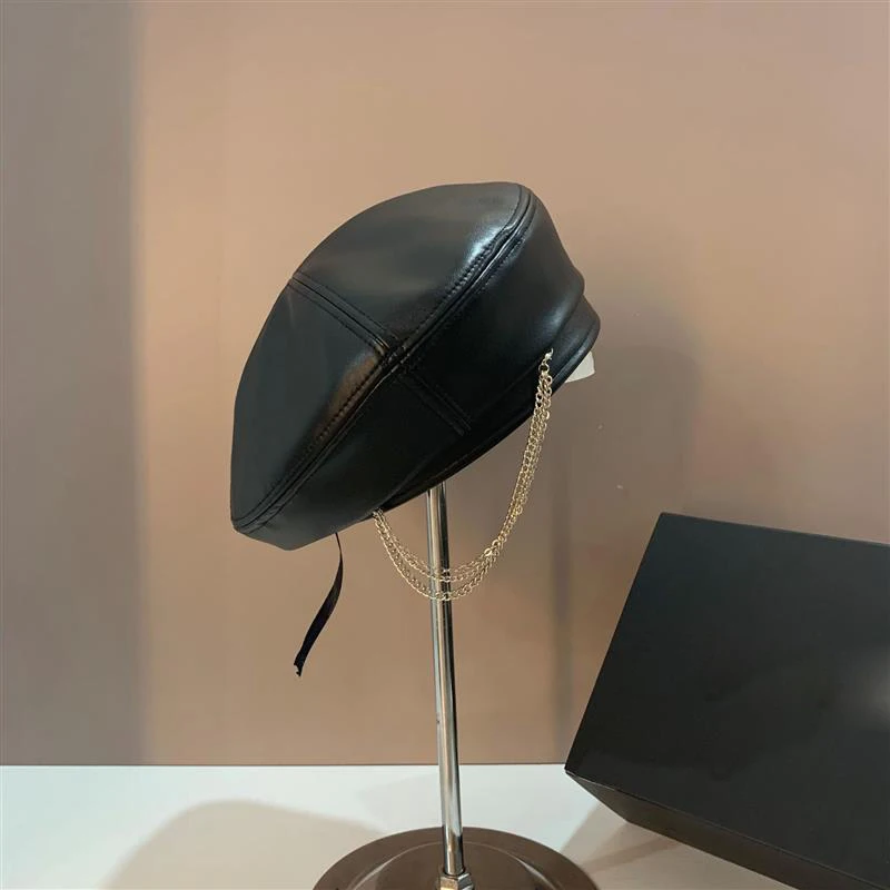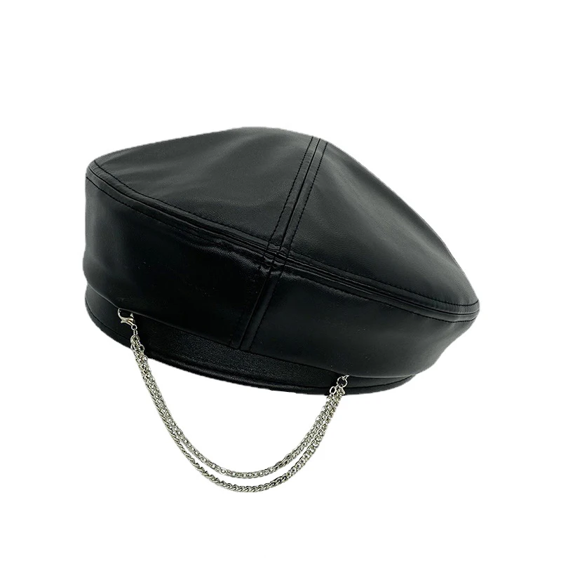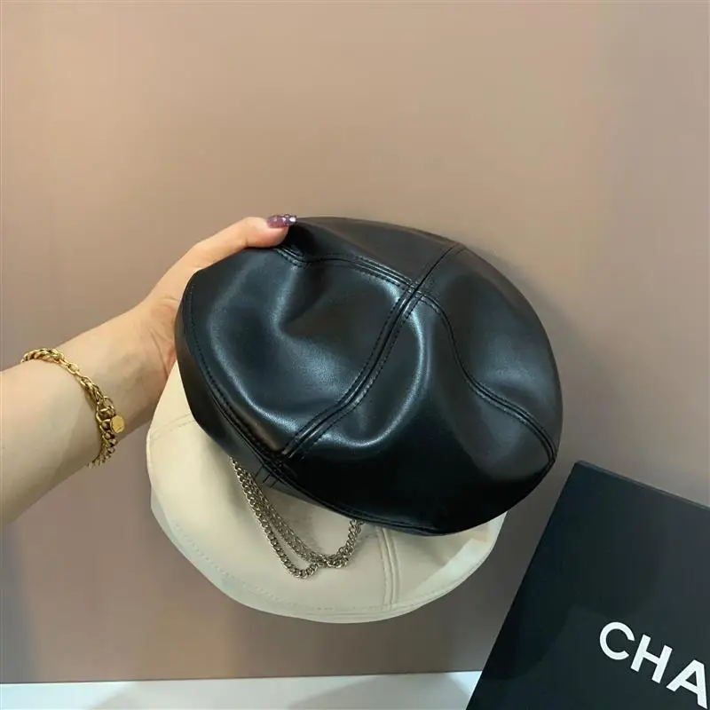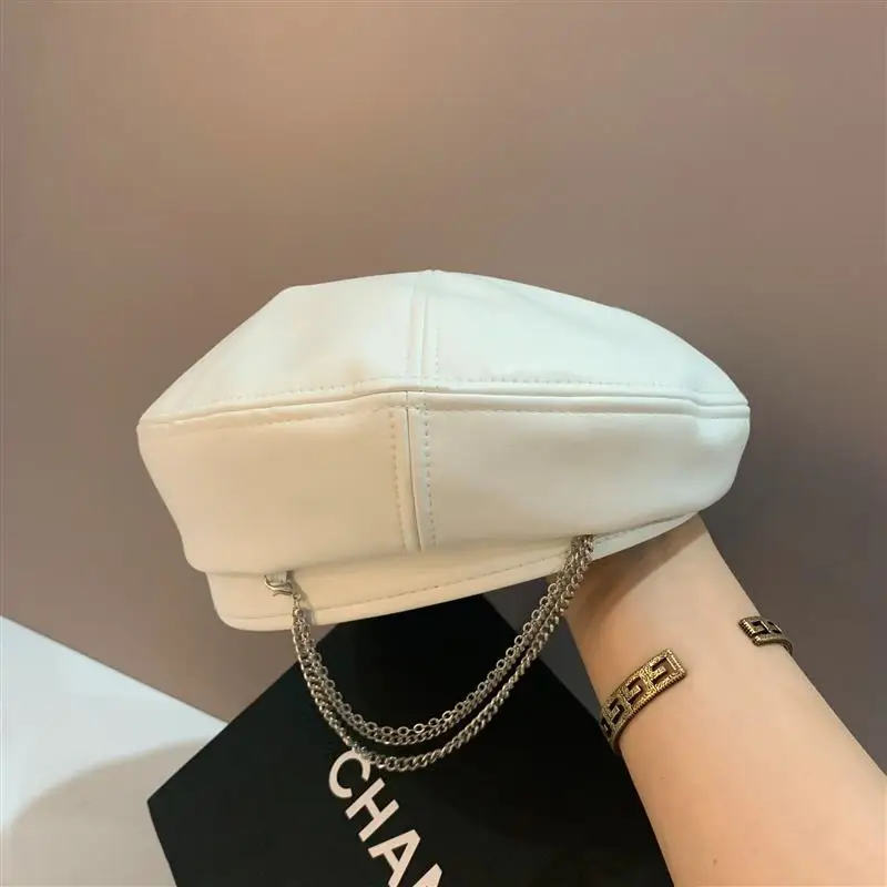 PU Leather Chain Beret Fashion Hot Girl Painter Hat Female Four Seasons Head Wear Wild High Fashion Pumpkin Hat