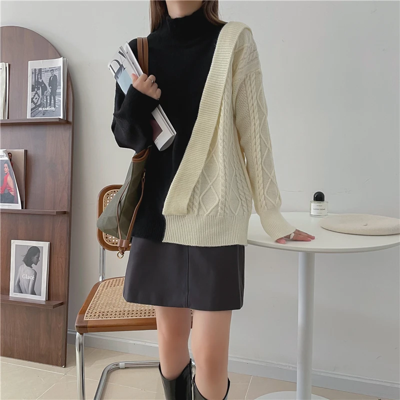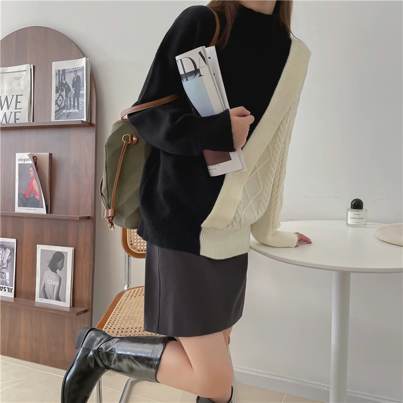 Женский свитер в полоску пуловер оверсайз с длинным рукавом готическом стиле -