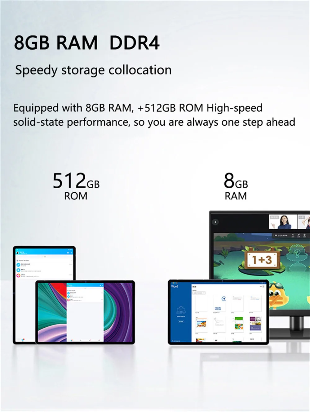 8 ГБ DDR4 Хранение делает многозадачность более эффективной,512GB SATA M.2 SSD Имеет высокую скорость чтения и письма, приложение можно открыть и переключить мгновенно.
