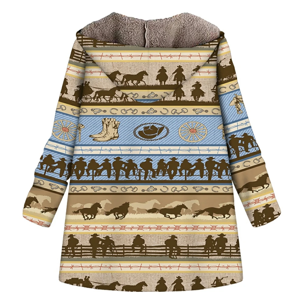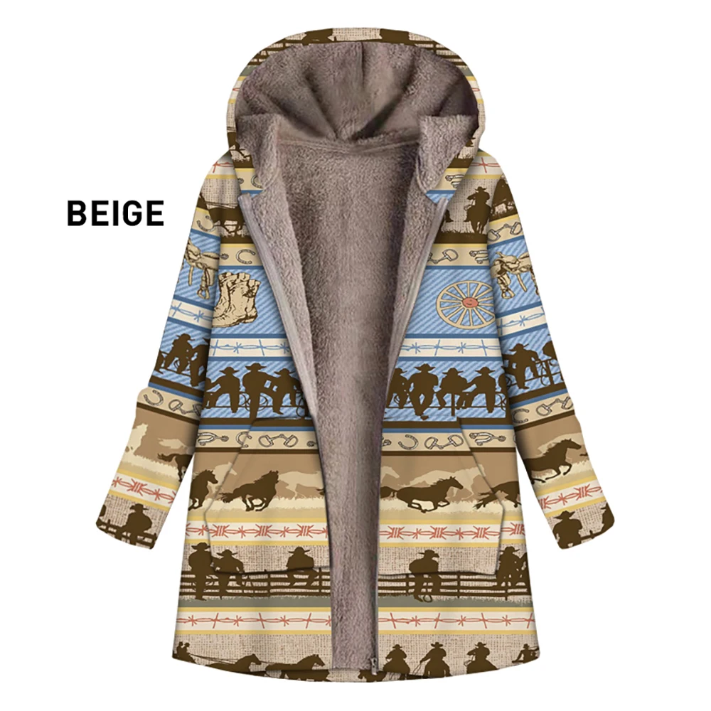 Everkaki Этническая замшевая куртка из овечьей шерсти Женское пальто с принтом в