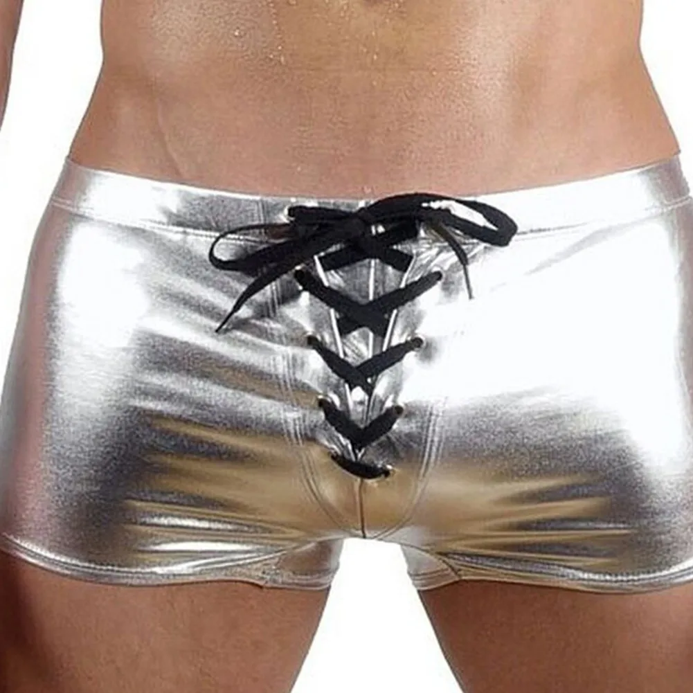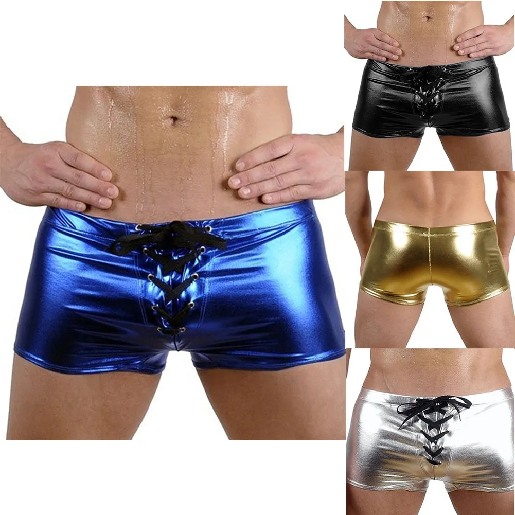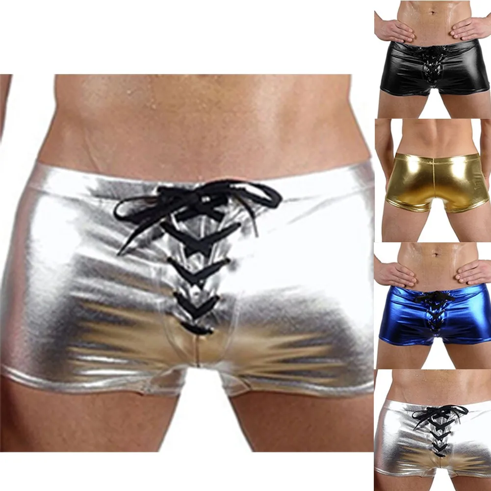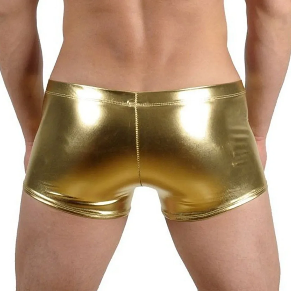 Мужские сексуальные шорты-боксеры, кожаное блестящее нижнее белье, эротическое короткое нижнее белье на молнии, трусы Sissy, горячие трусы, эластичное нижнее белье с поясом