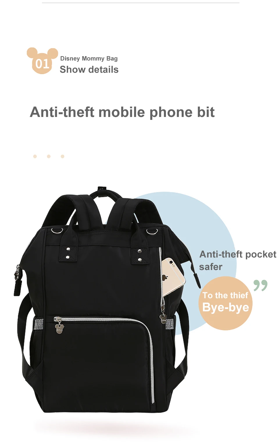 Disney Mommy сумка для коляски, водонепроницаемый рюкзак для беременных, вместительный рюкзак для детских подгузников, многофункциональная дорожная сумка