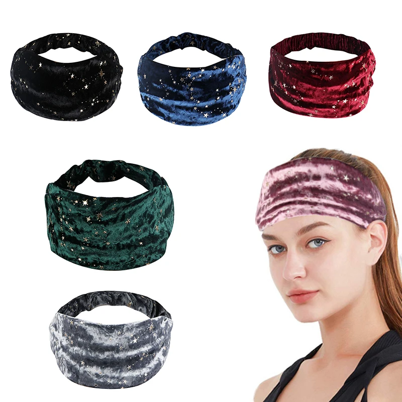 Золотая Бархатная спортивная повязка на голову в бронзовом стиле; Удобная и эластичная ткань; Удобно носить.