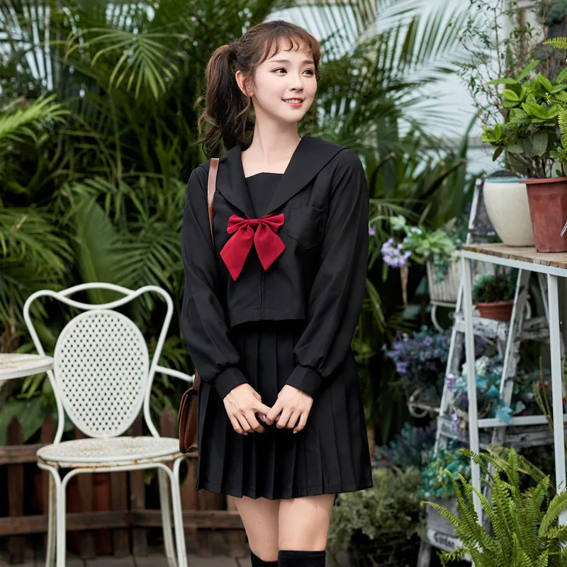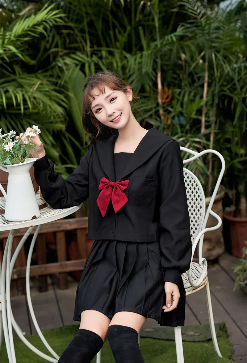 Модная черная Корейская школьная форма с длинными рукавами, костюмы моряка, милые костюмы для девочек для косплея, школьная форма JK