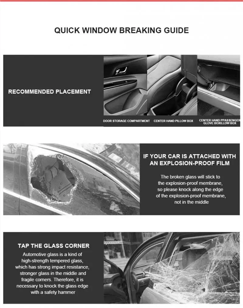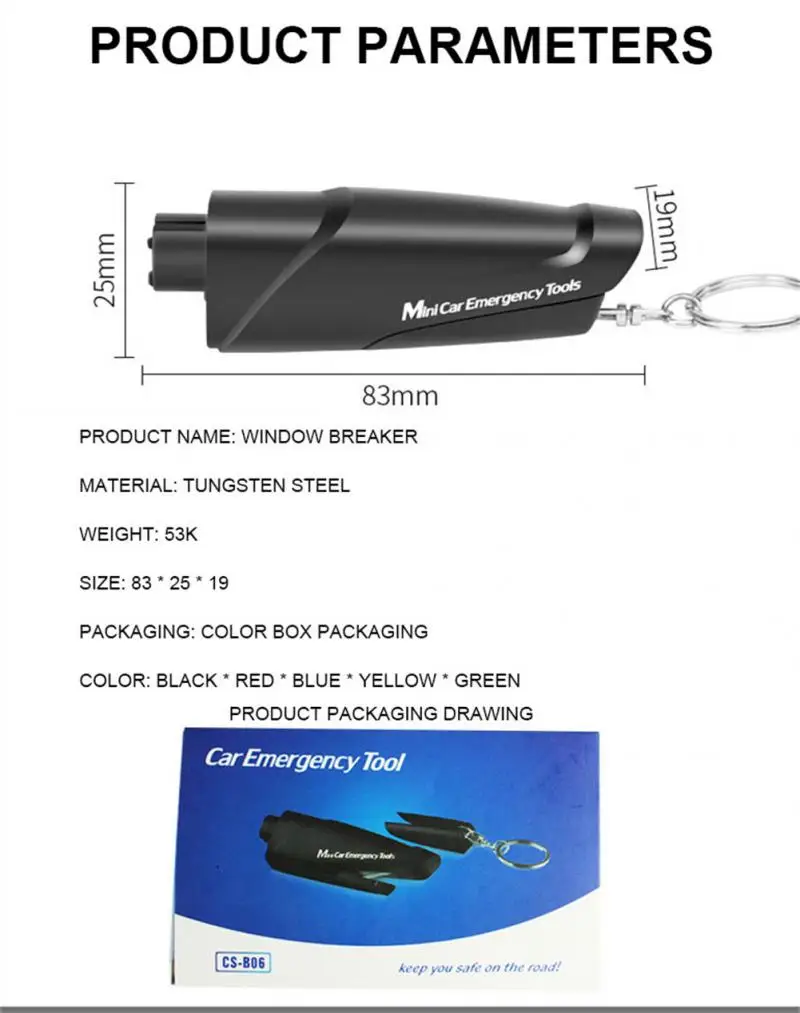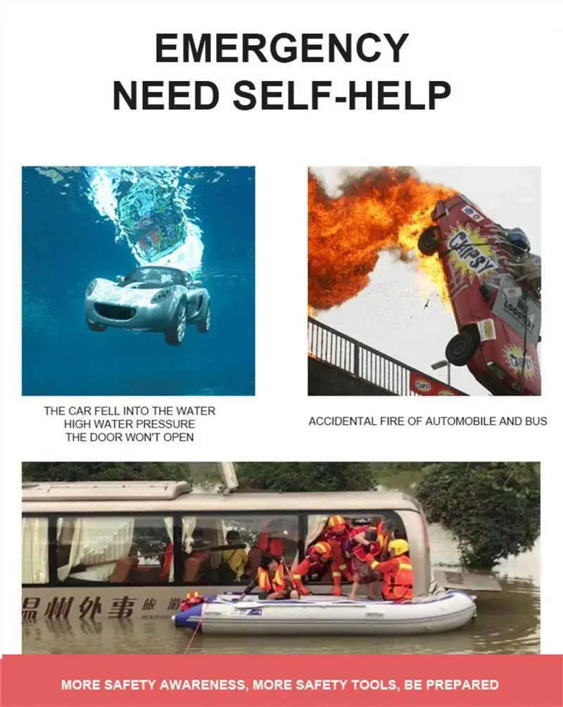 Компактный и легкий для переноски в любое время, секунды, чтобы сломать окна, чтобы быстро избежать, экономя время и усилия, когда механические сломанные окна, острые безопасности, есть резец защитные устройства.