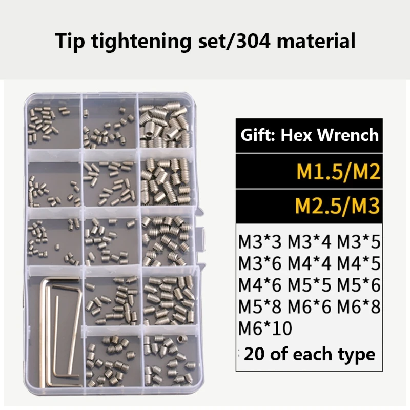 Широкий спектр применения: шестигранный набор для фиксации винтов из нержавеющей стали может широко использоваться в дверных ручках, смесителях, лампах, ручках, ремонте боеприпасов, сантехниках и других небольших ремонтах вокруг магазинов, гаражи или дома.