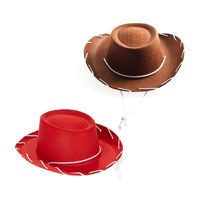 Детская ковбойская Кепка с большими полями, Регулируемая Кепка в ковбойском стиле коричневого и красного цветов, Детская кепка в ковбойском стиле для мальчиков и девочек, вечерние праздничные костюмы