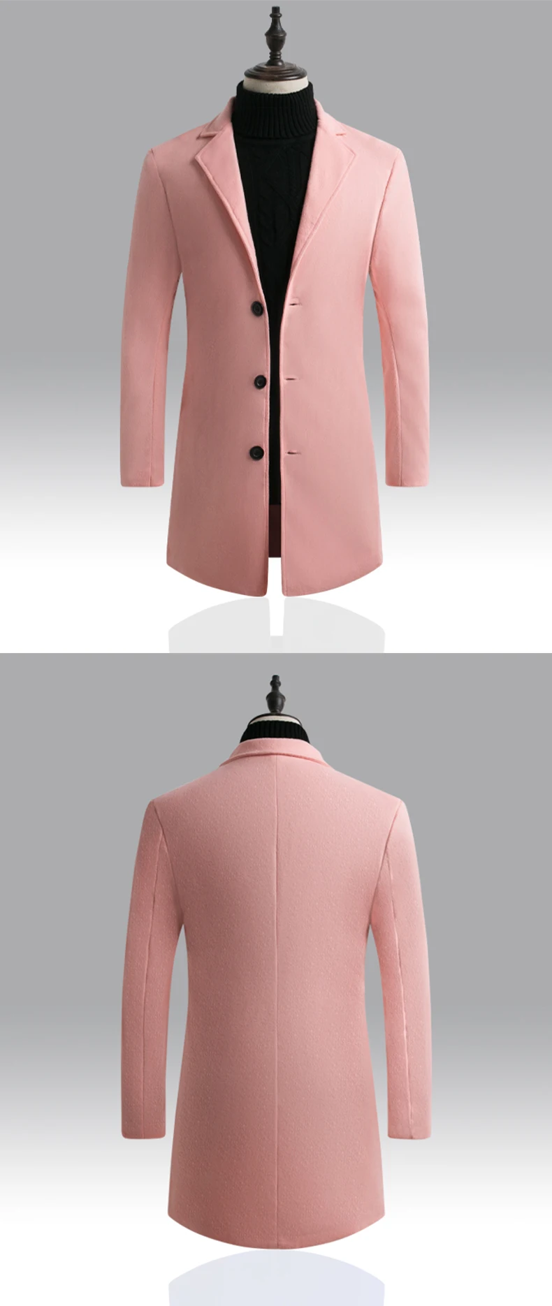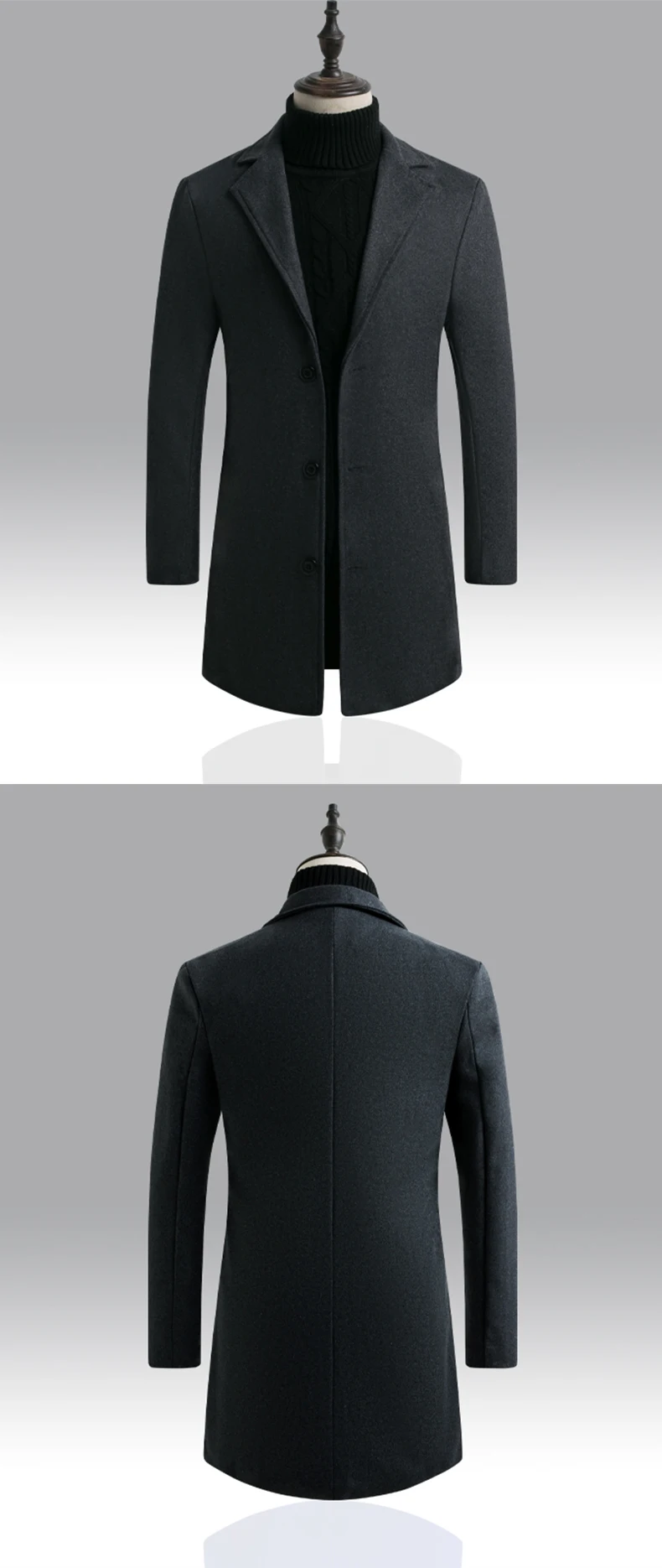 Мужское длинное пальто, осенне-зимнее Новое мужское шерстяное пальто с отделкой, длинное пальто с отворотом, однотонное, на пуговицах, десять вариантов на выбор