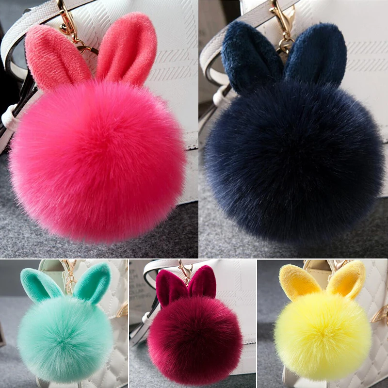 Большой размер, пушистый кролик, игрушки, брелок с ушками, милые заячьи ушки, брелок, сумка из искусственного меха, подвеска для автомобиля, очаровательный брелок, держатель с помпоном
