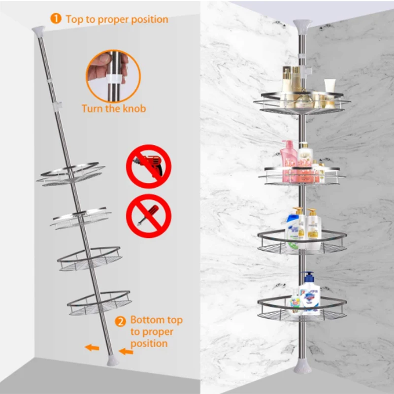 ★Телескопические полки для душа не требуют сверления, никаких повреждений стен;