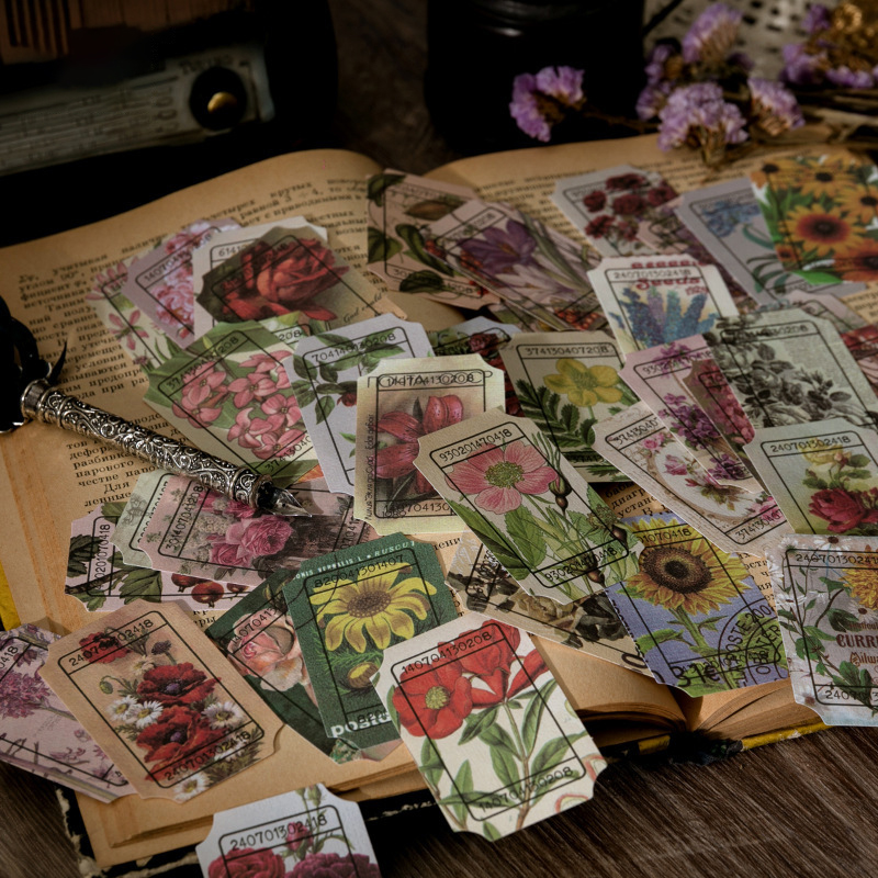 4. Посылка включает в себя 100 листов декора скрапбукинга в 50 узоров, каждый узор состоит из 2 частей. Размеры около 38*60 мм.