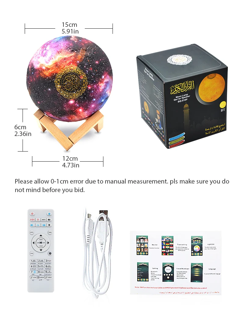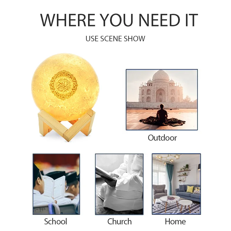 Различные режимы освещения переключаются по желанию, и сенсорный выключатель света являются новыми и интересными, создавая различный визуальный опыт. Встроенная TF карта, Quran play.
