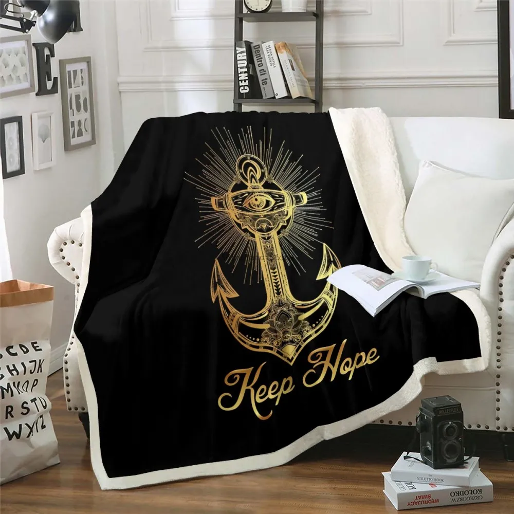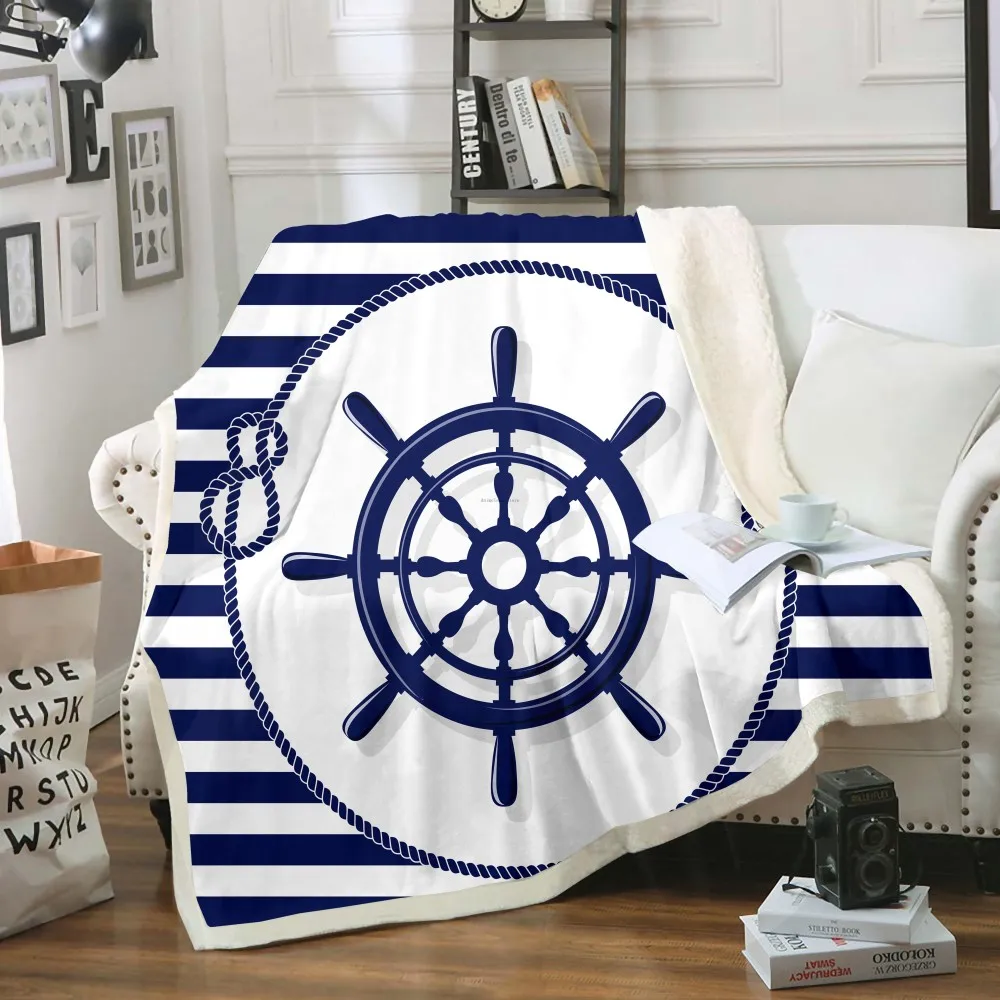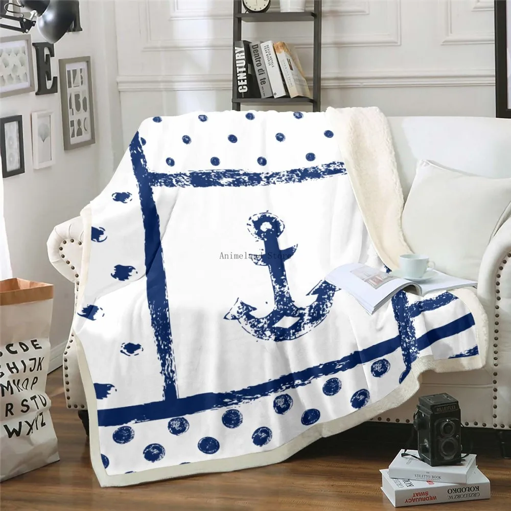 Голубое покрывало с якорем и шерпой, Детское покрывало для мальчиков, покрывало для дивана, покрывало на кровать