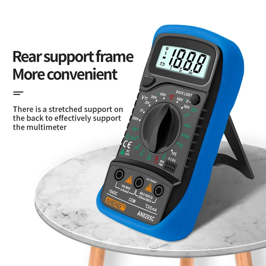 Этот мультиметр удобен, имеет расширенную опорную рамку и силиконовую защитную крышку, которая может быть опущена и подходит для измерения напряжения, тока и т. д.
