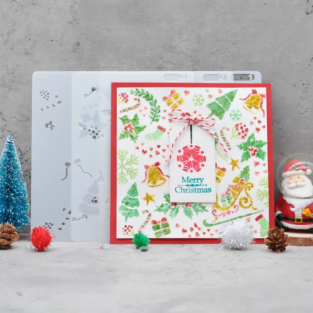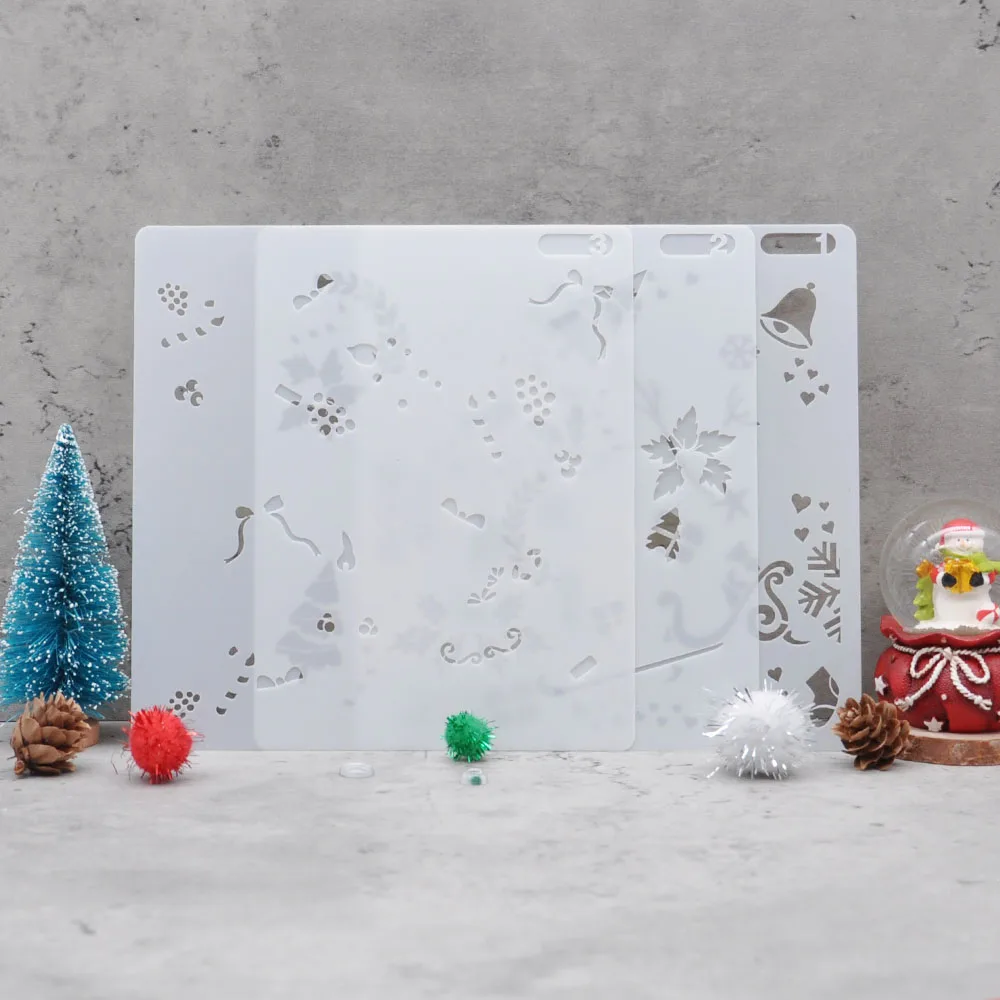 Многослойный трафарет Счастливого Рождества фон 3 шт снежинка Скрапбукинг тиснение DIY бумажные карты Ремесло Холли декоративный шаблон