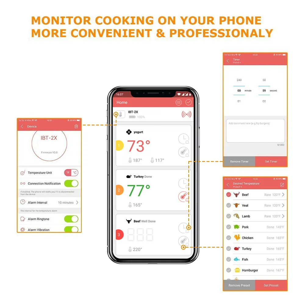 Inkbird Bluetooth беспроводной термометр для мяса IBT-2X портативный цифровой светодиодный измеритель температуры для приготовления барбекю, гриля, духовки